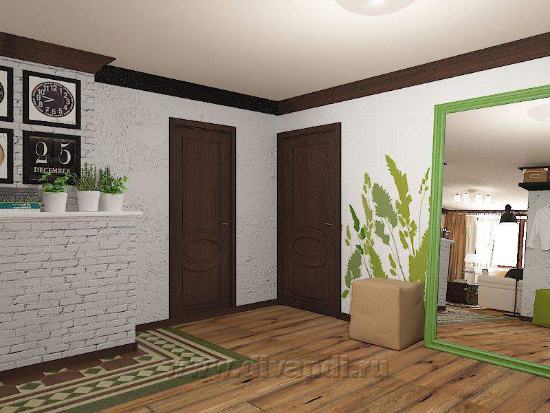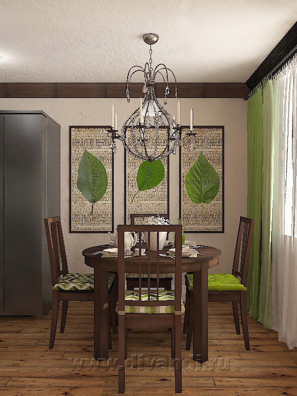 Часть мебели существующая, зелено-коричневая плитка около камина тоже сохранилась из прежнего интерьера. Именно это и обусловило выбор цветовой гаммы и обусловило причиной появления в интерьере зеленого цвета.