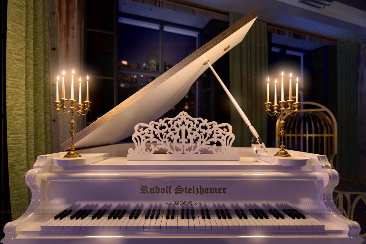 В ней разместились прихожая, коридор, кухонная, обеденная и гостиная зоны, а также библиотека и музыкальный уголок.