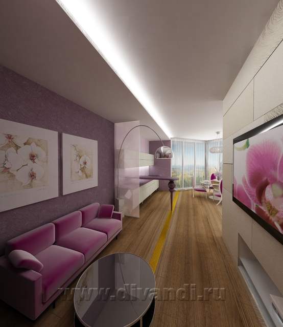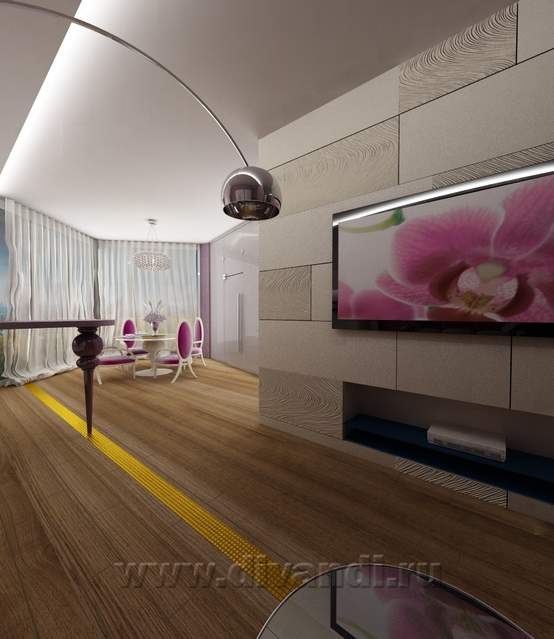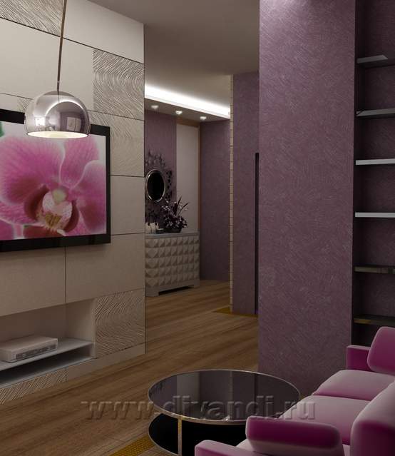 Проект интерьера для молодой пары. Квартира площадью 70 м.кв со сложной планировкой. Квартира длинная, окна находятся только в передней части в зоне гостиной и кухни. Для наполнения квартиры естественным светом, было принять решение не использовать глухие двери. Присутствовала необходимость в небольшом кабинете, стена в кабинете выполнена полностью из матового стекла, Что помогает скрыть его не большие габариты. Интерьер в минималистичной стилистике, с добавлением ярких интерьерных акцентов.