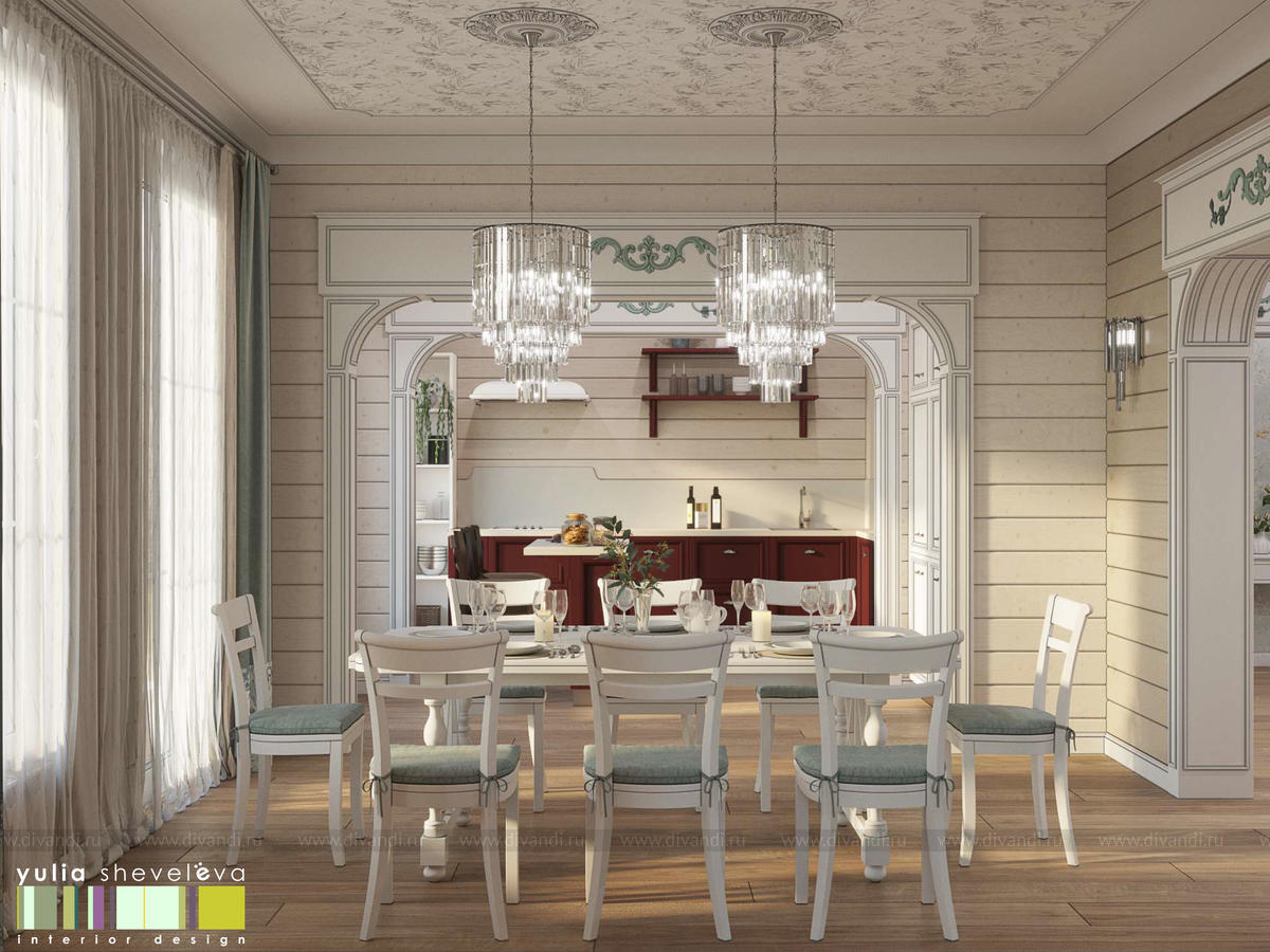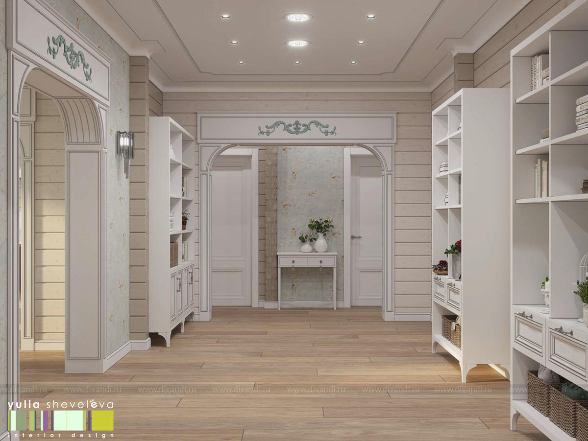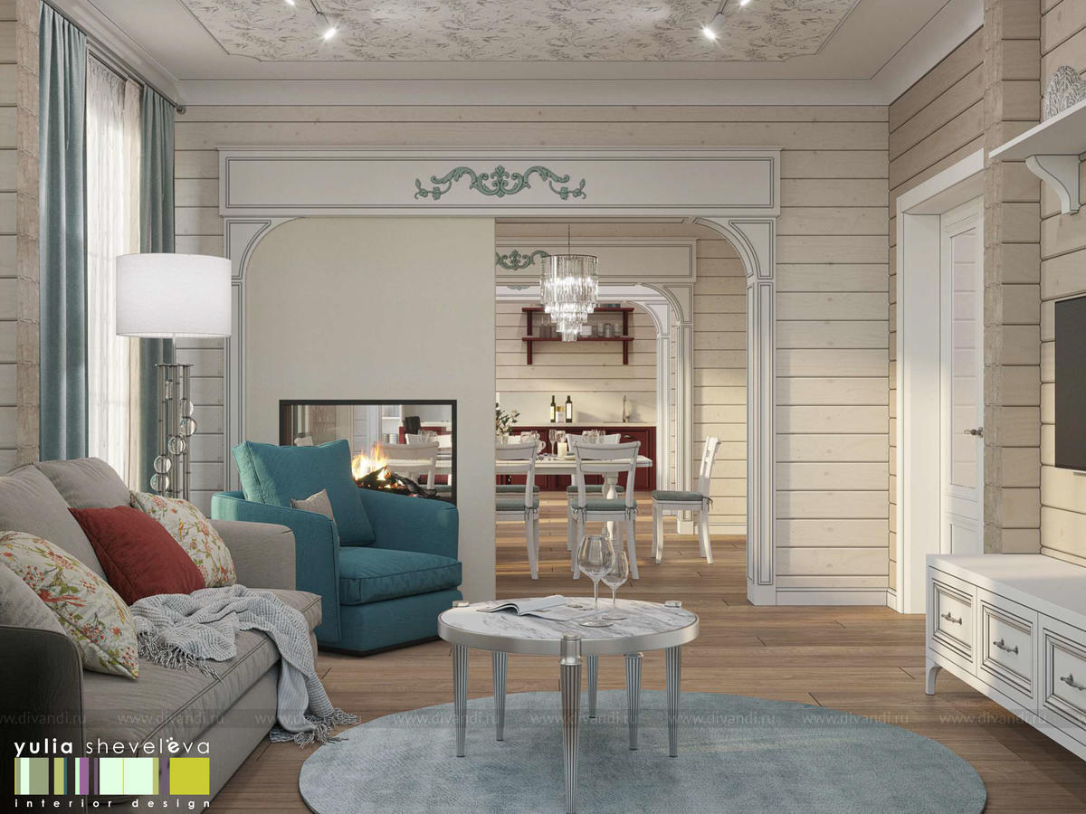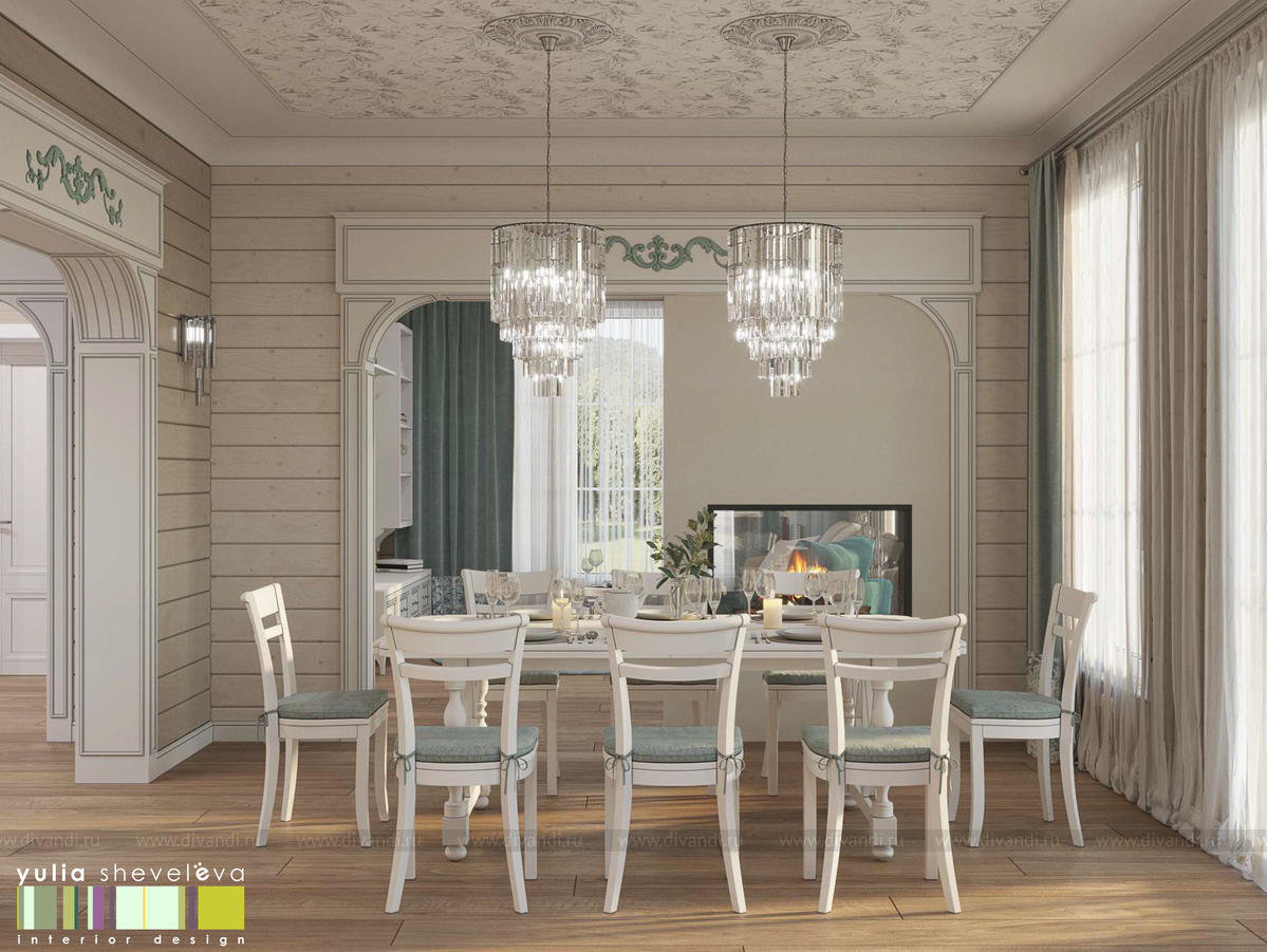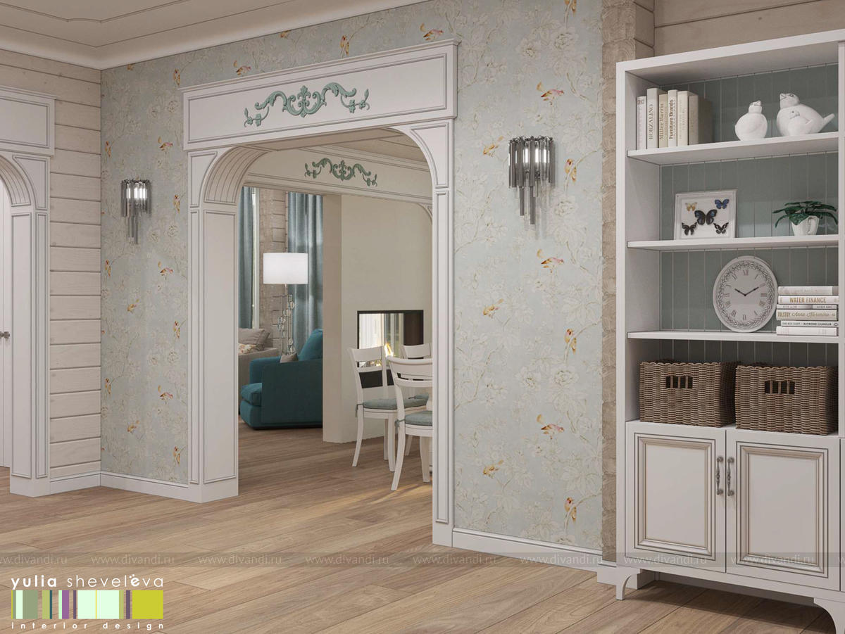 Создан очень теплый и уютный интерьер в легком классическом стиле. Пастельные тона и нежные оттенки создают комфортное пространство, а в отделке использованы преимущественно натуральные материалы.