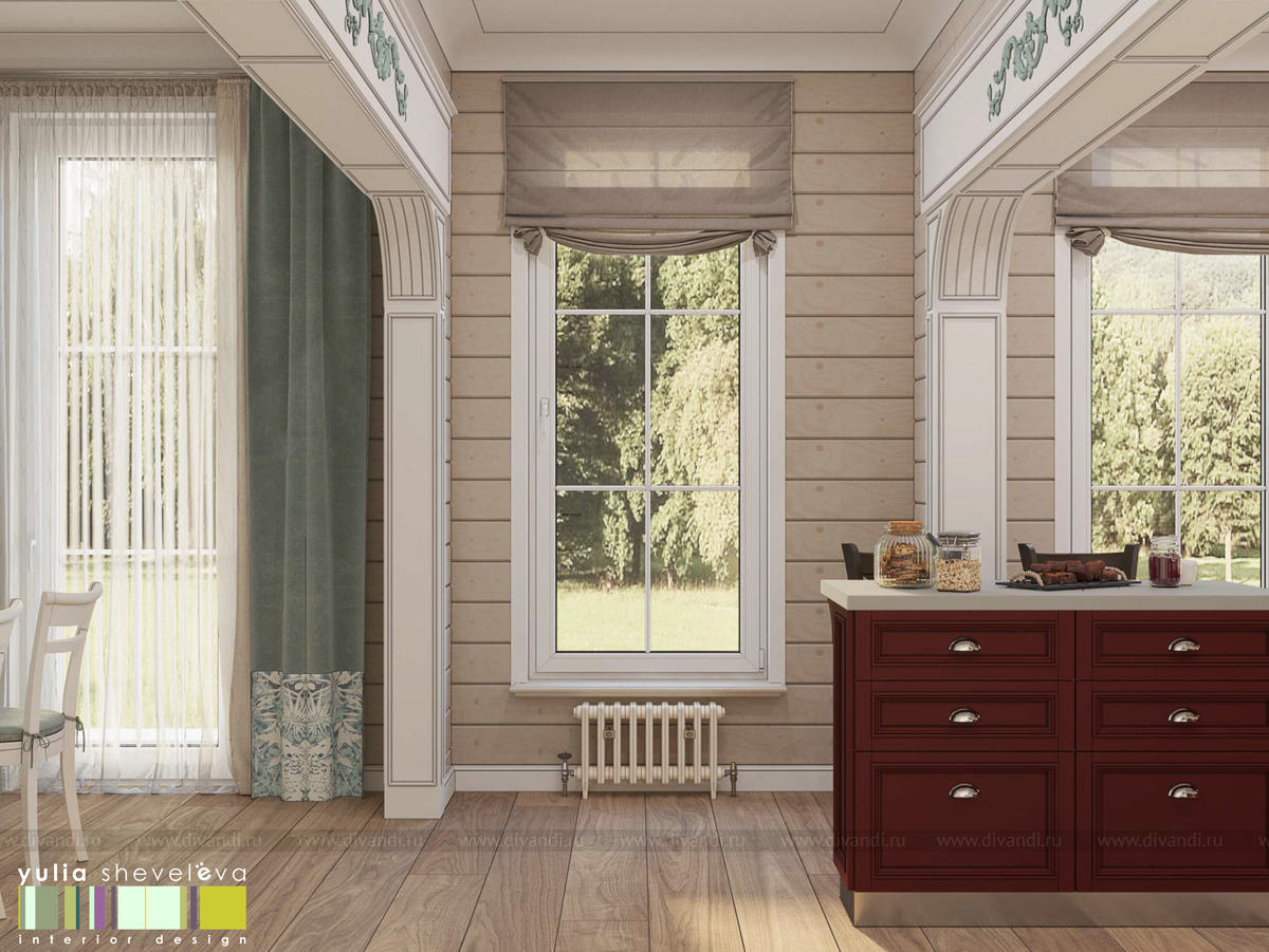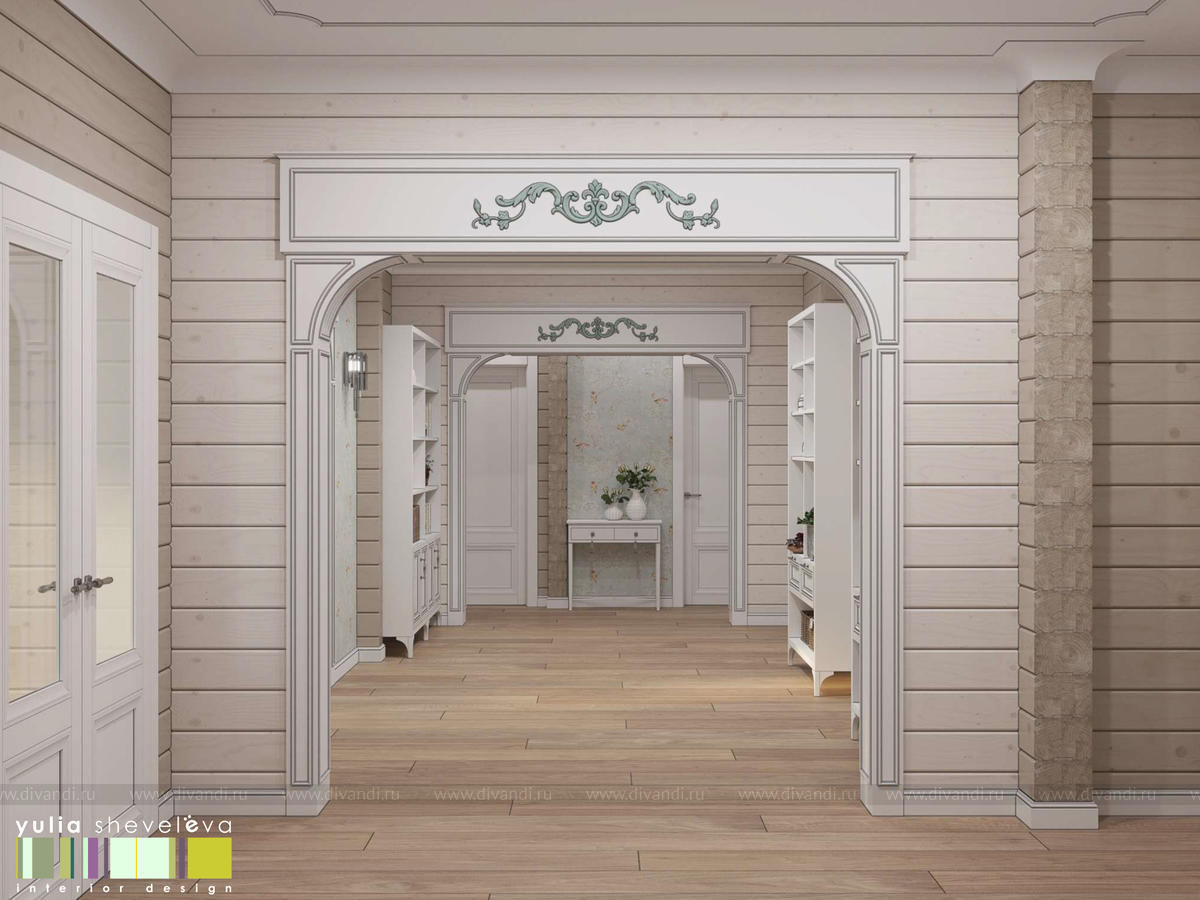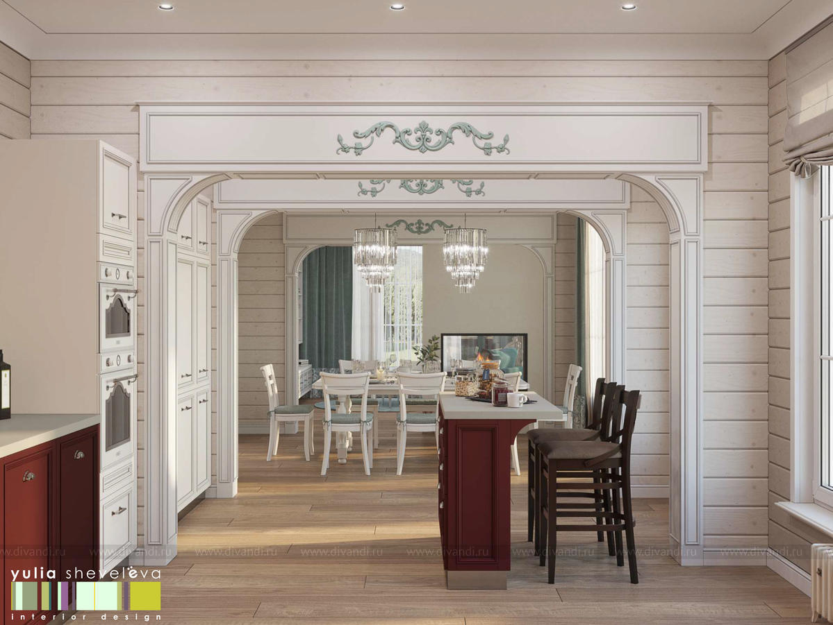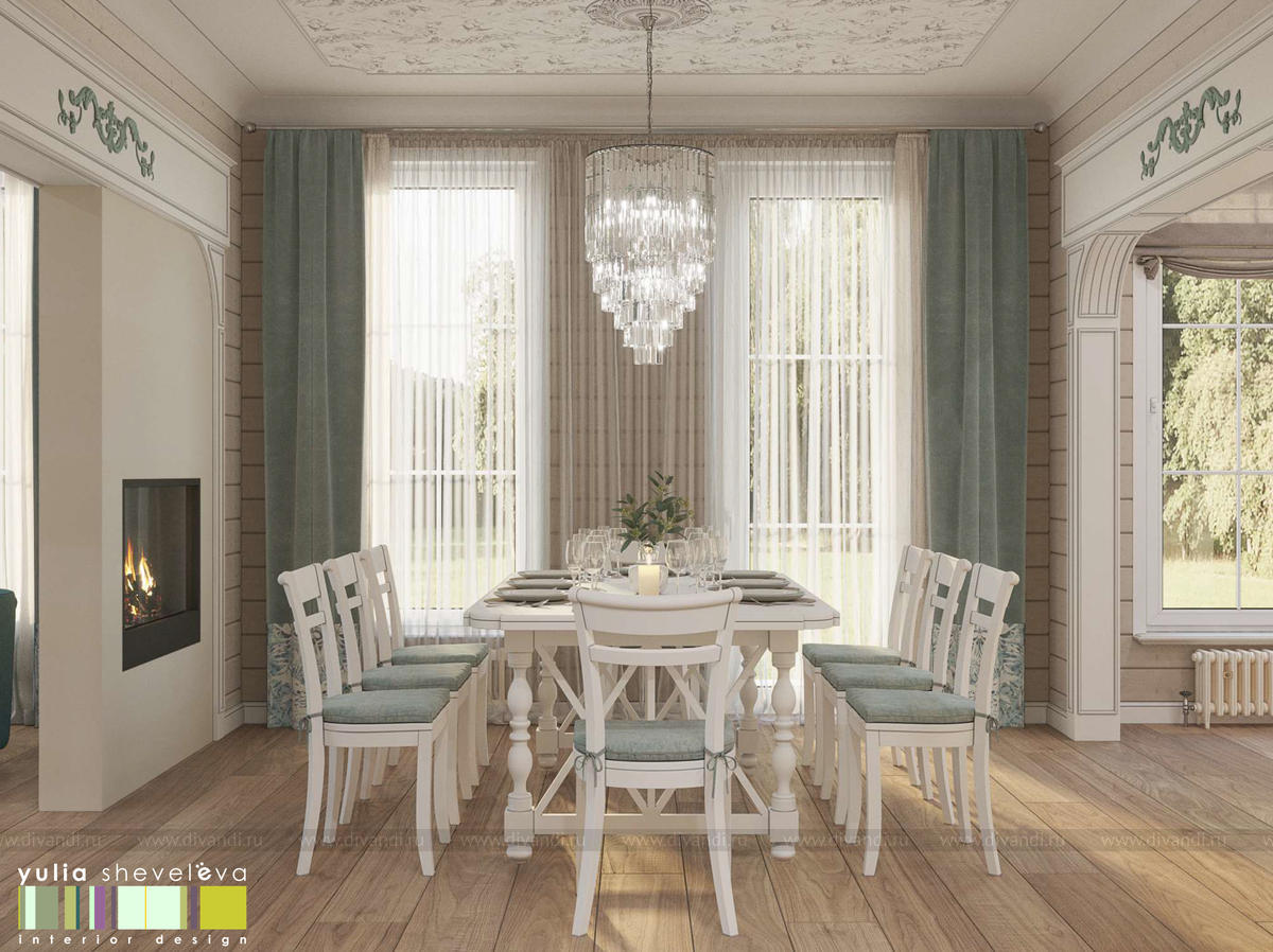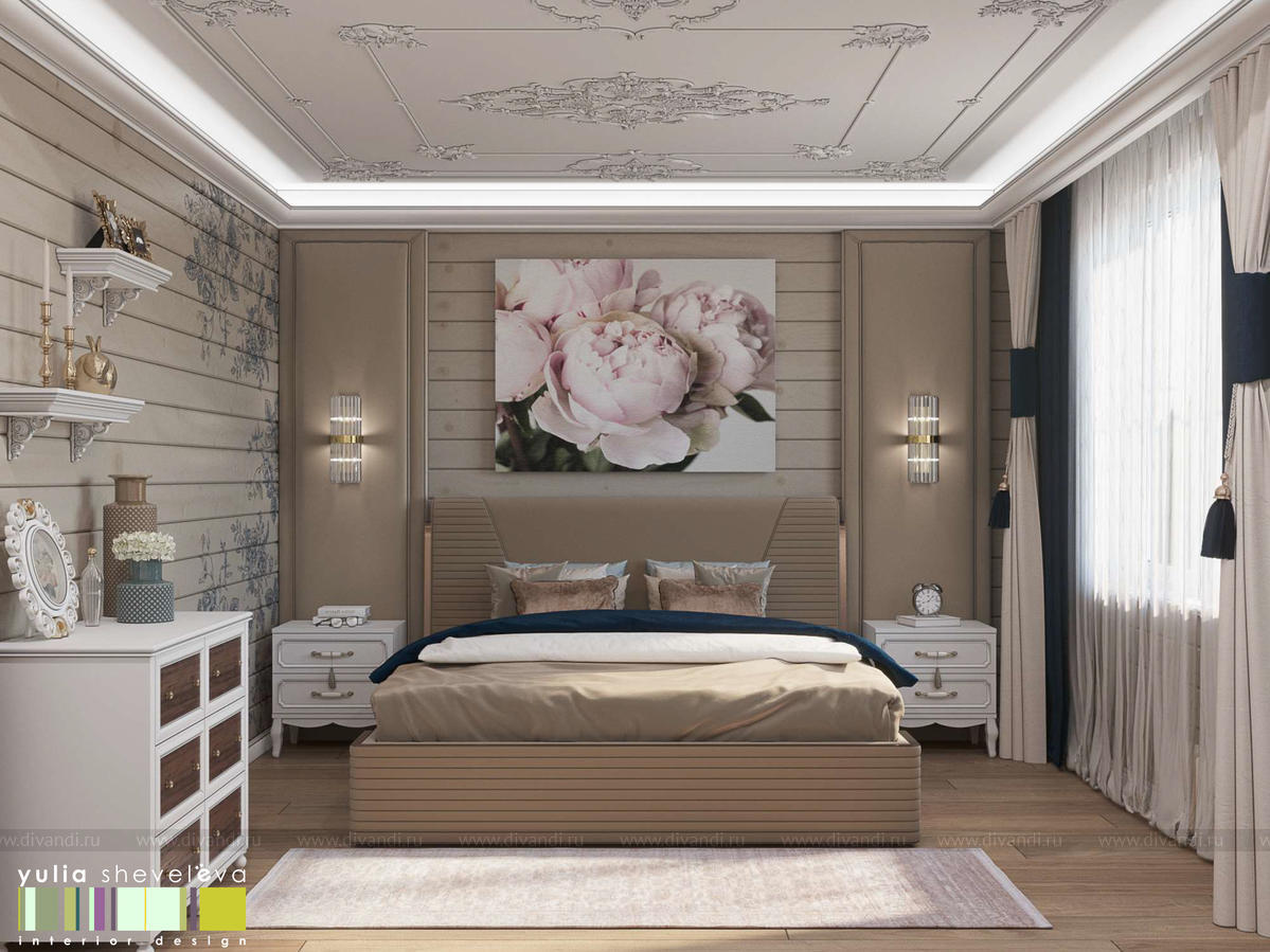 Создан очень теплый и уютный интерьер в легком классическом стиле. Пастельные тона и нежные оттенки создают комфортное пространство, а в отделке использованы преимущественно натуральные материалы.