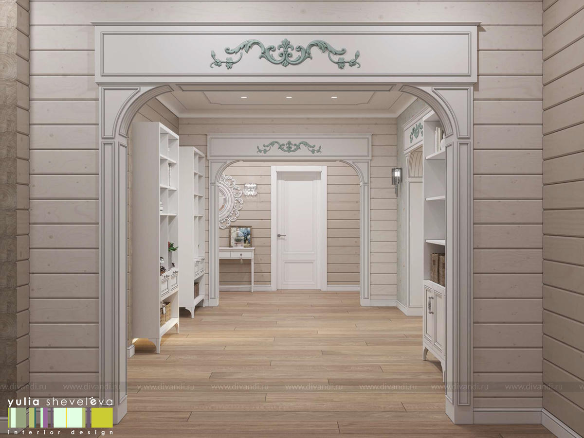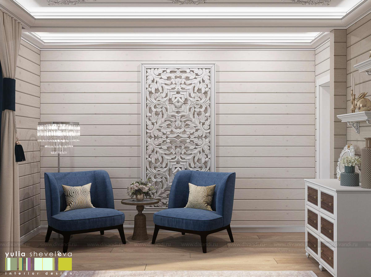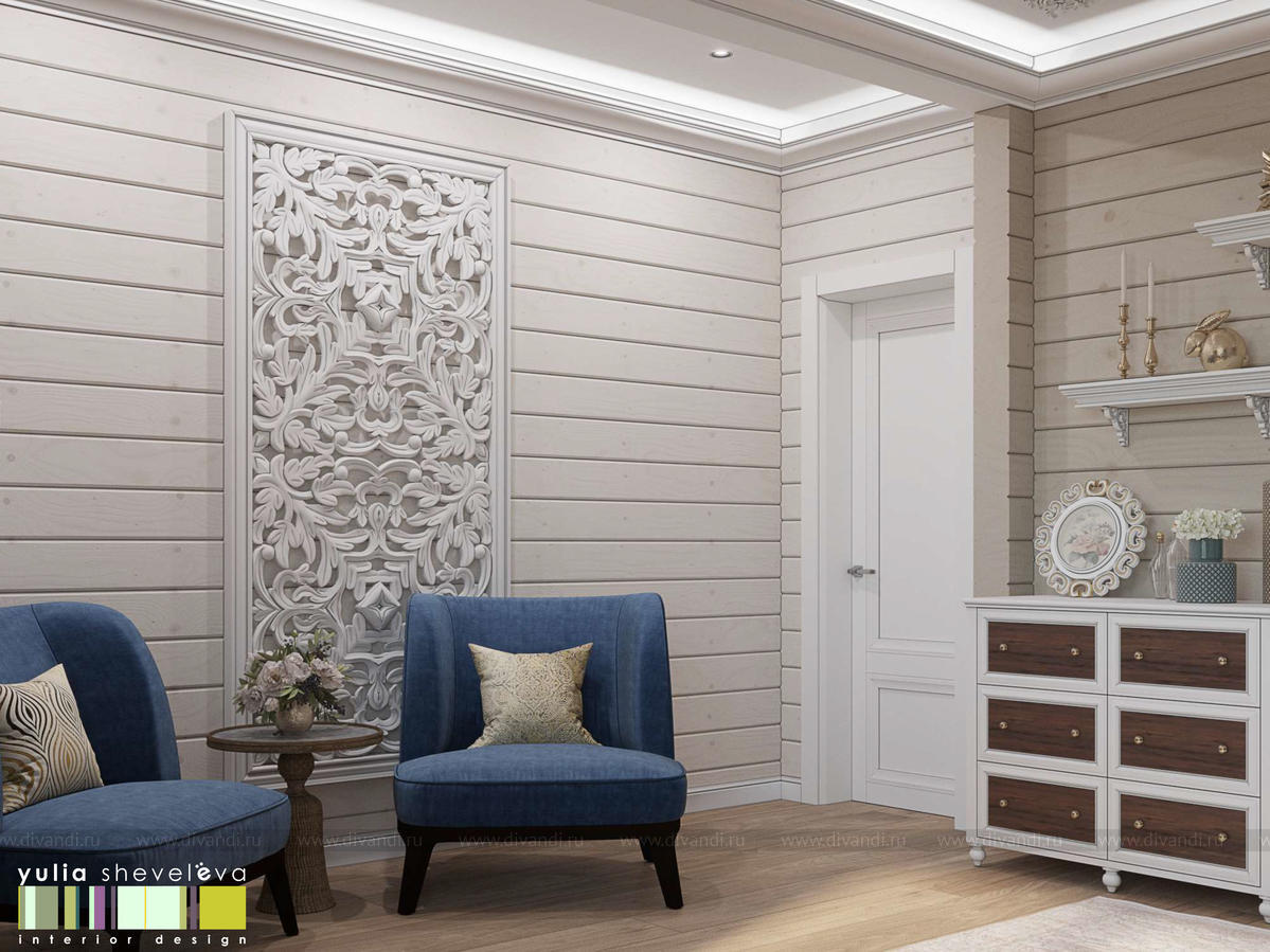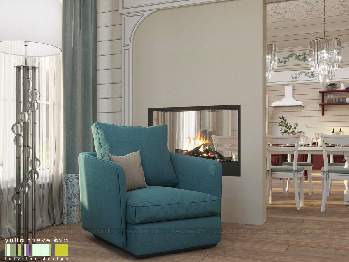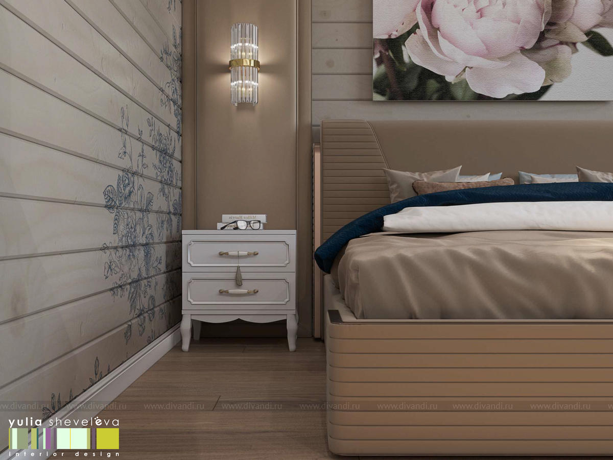 Создан очень теплый и уютный интерьер в легком классическом стиле. Пастельные тона и нежные оттенки создают комфортное пространство, а в отделке использованы преимущественно натуральные материалы.