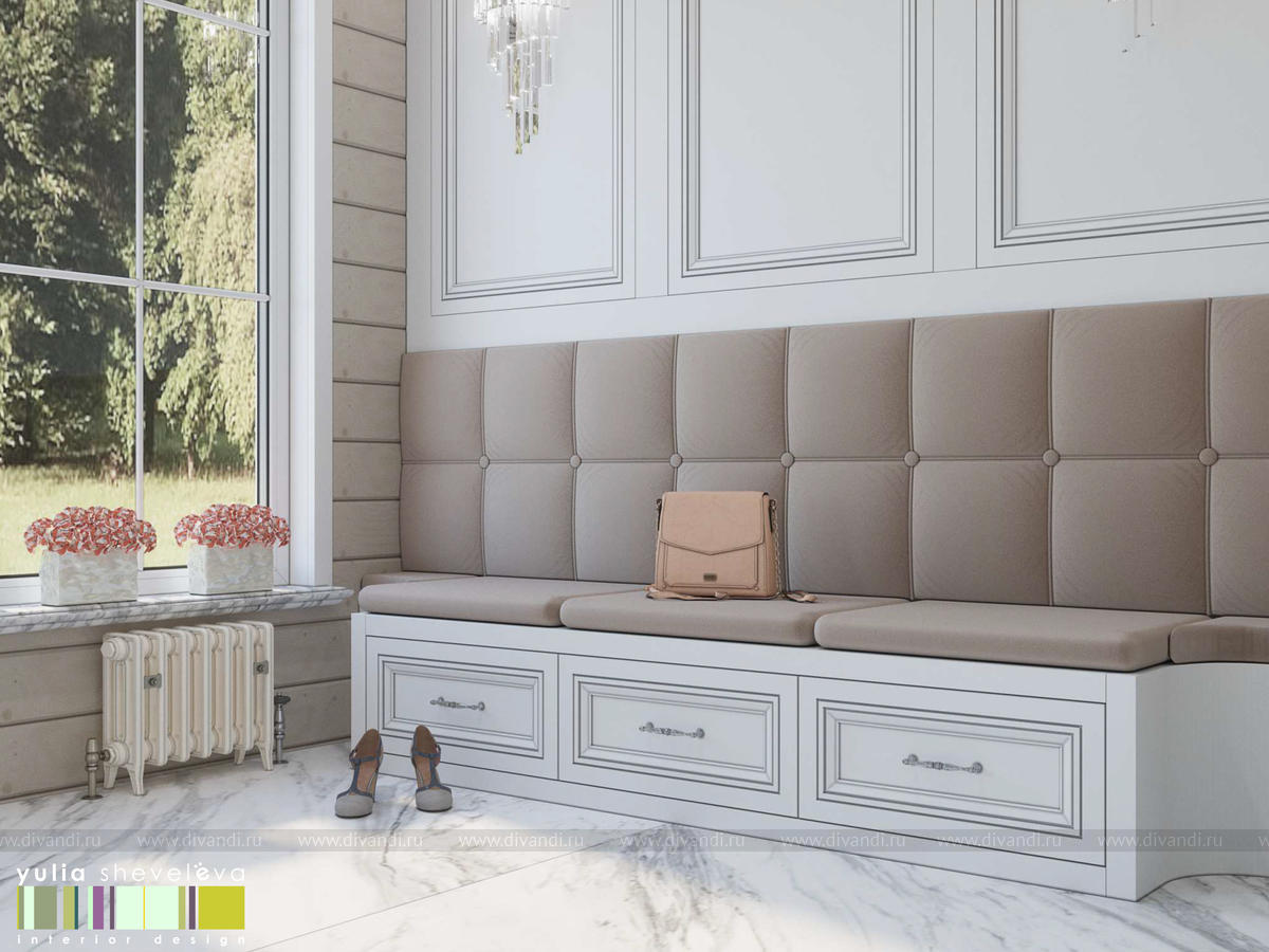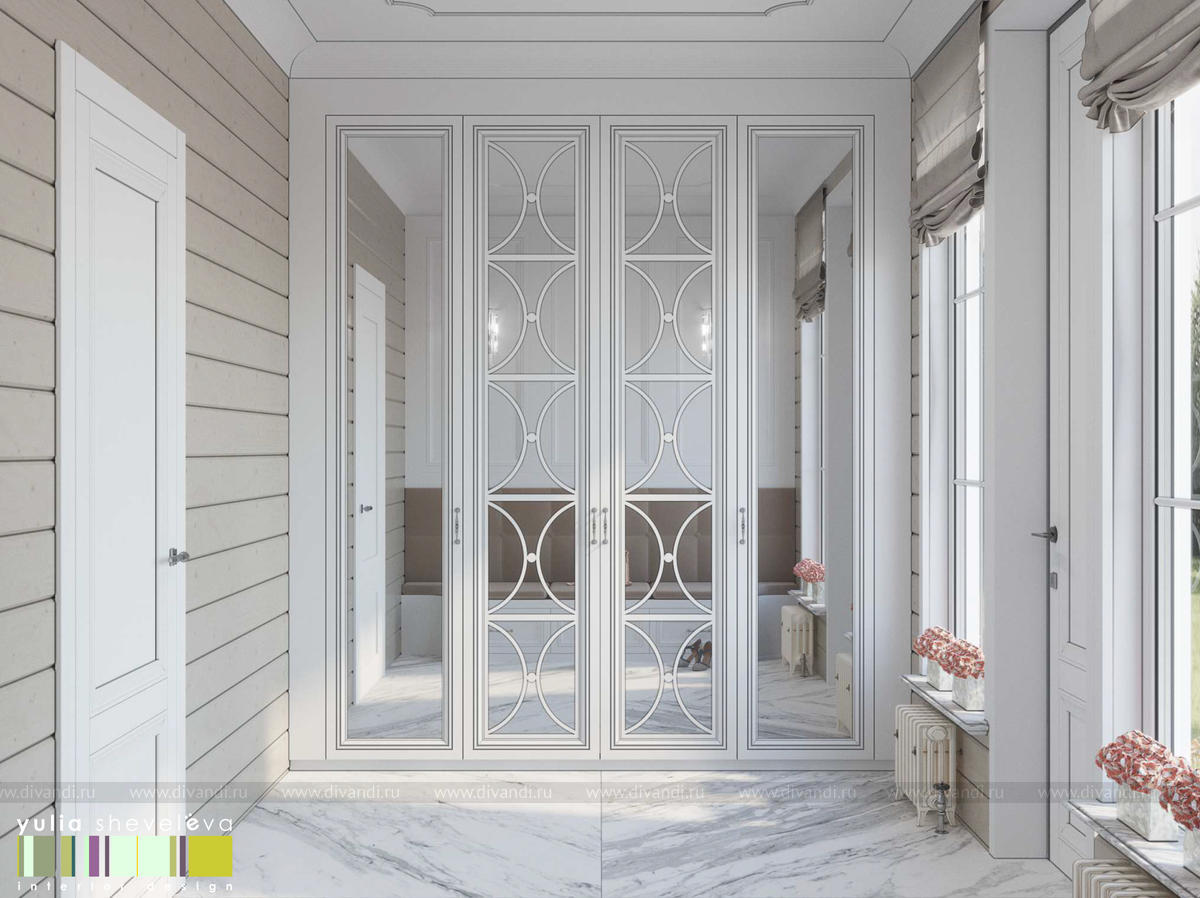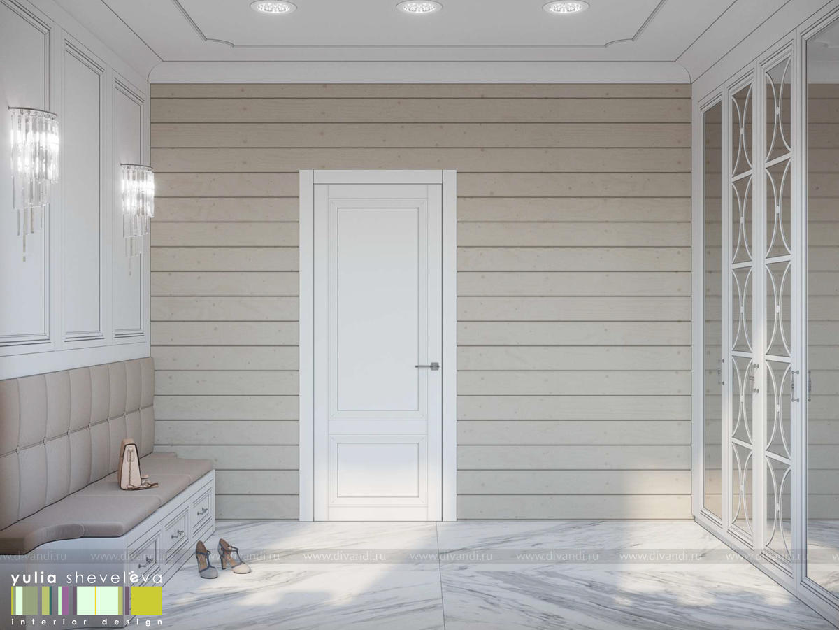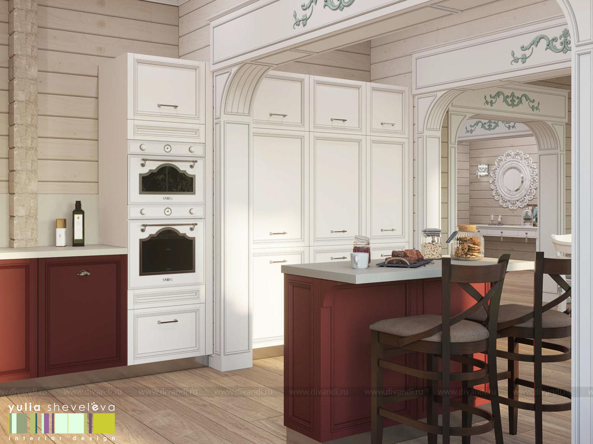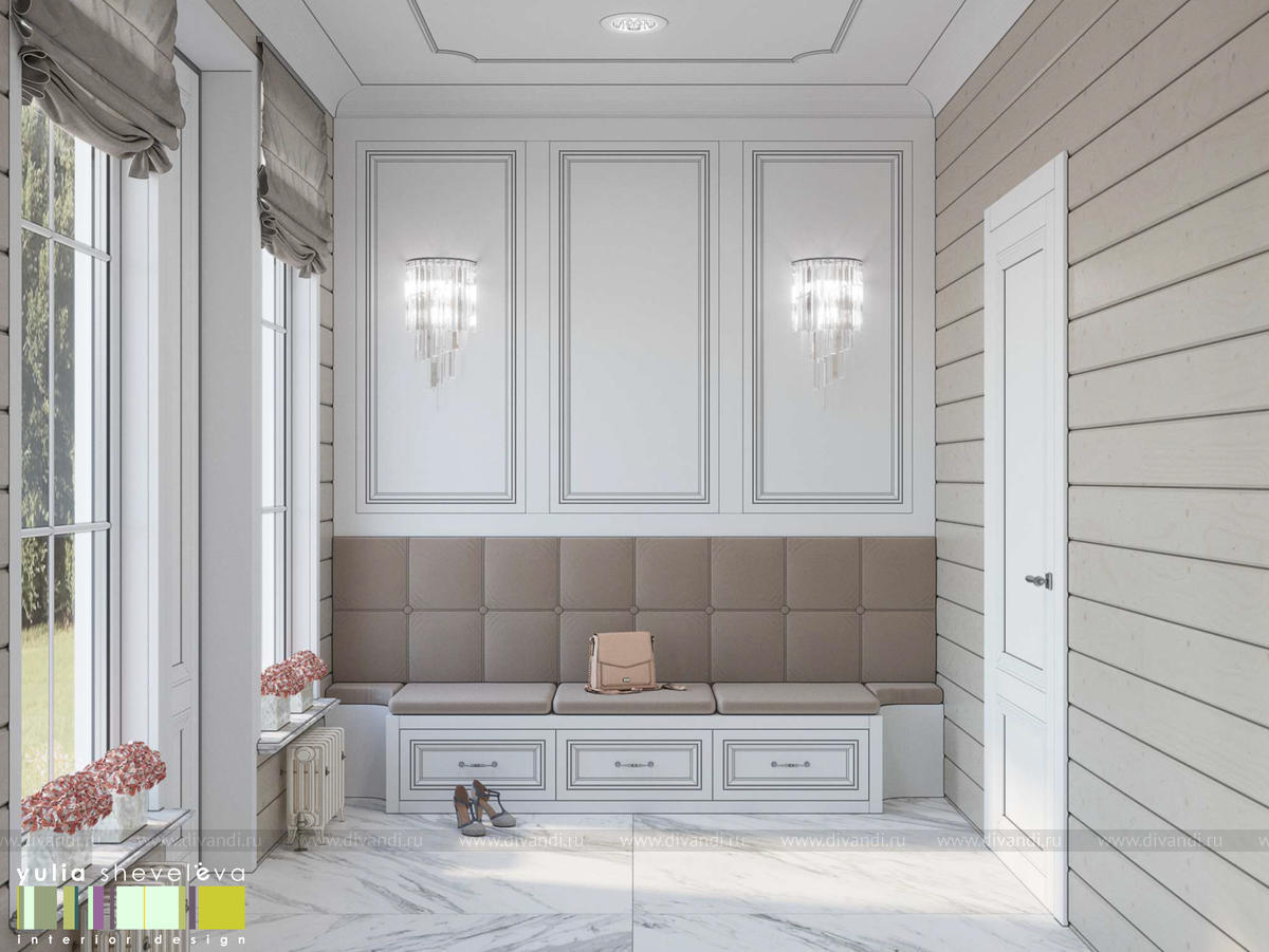Создан очень теплый и уютный интерьер в легком классическом стиле. Пастельные тона и нежные оттенки создают комфортное пространство, а в отделке использованы преимущественно натуральные материалы.