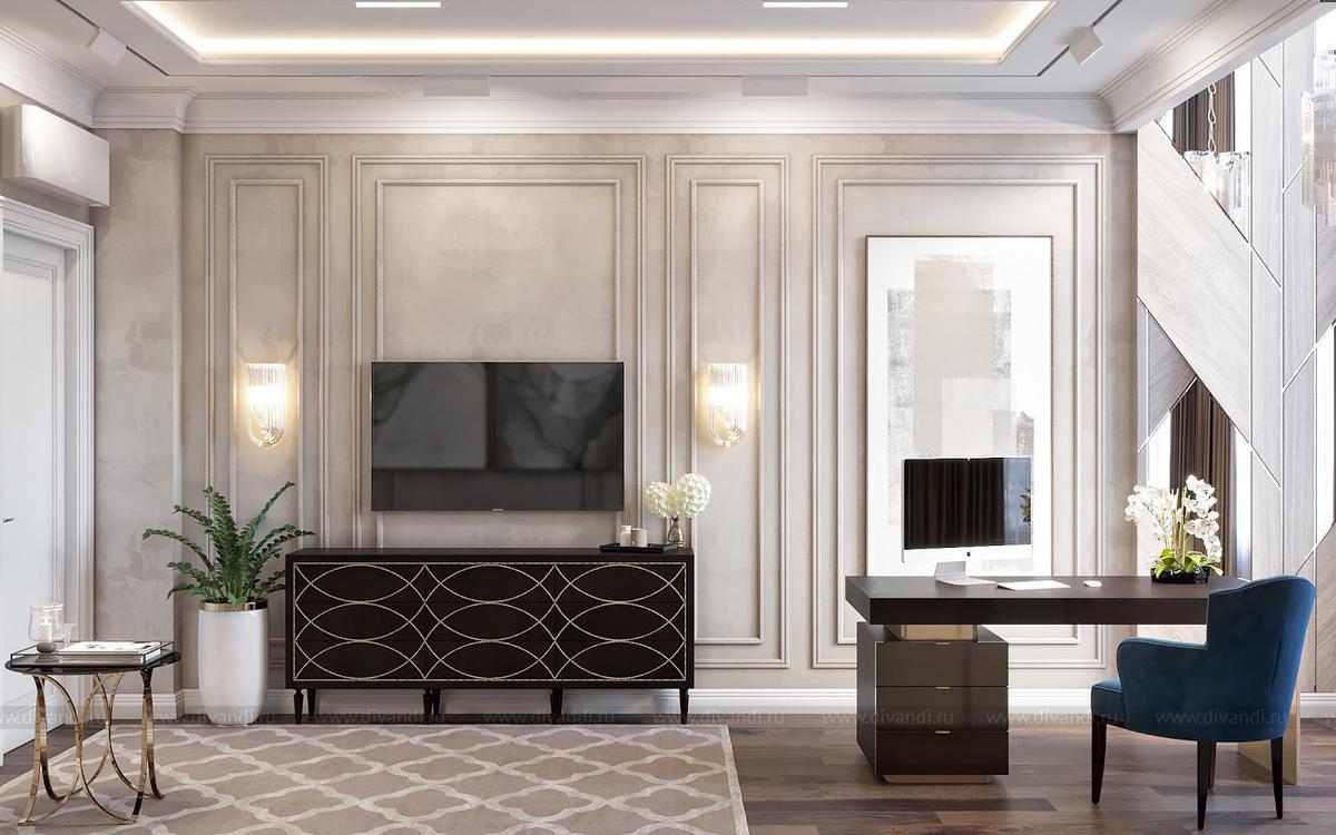 Интерьеры квартиры в ЖК "Балчуг Вьюпоинт" сочетают в себе роскошь, смелость форм, элегантность и основательность. Фацетные зеркала, блестящие металлические поверхности и обилие света подчеркивают классические черты интерьера, выполненного в стиле арт-деко. Каждая зона по-своему уникальна, насыщена цветовыми решениями, которые создают привычный контраст, сочетающий в себе фактуры дерева, камня и текстиля. Использование эксклюзивных деталей, мебели ручной работы и дорогих материалов только подчеркивает статус апартаментов, расположенных в самом центре столицы.
