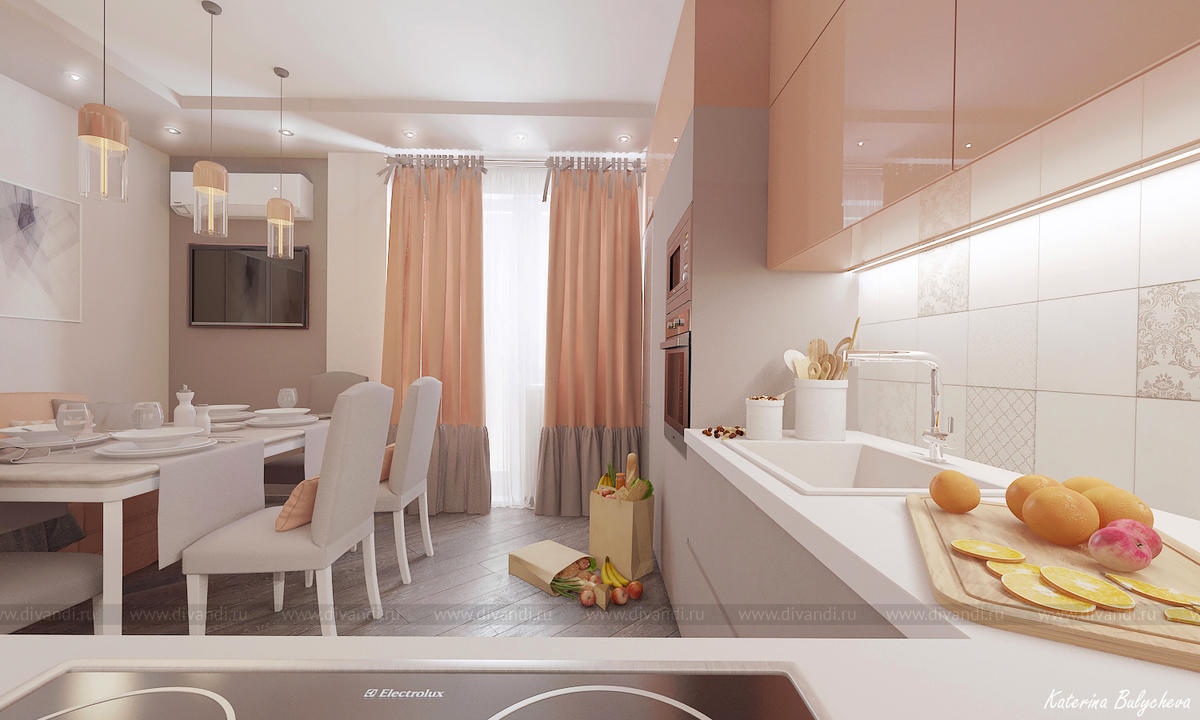 Уютная кухня-гостиная в любимом доме