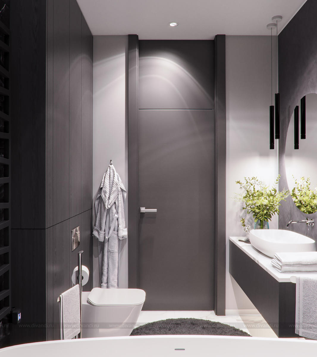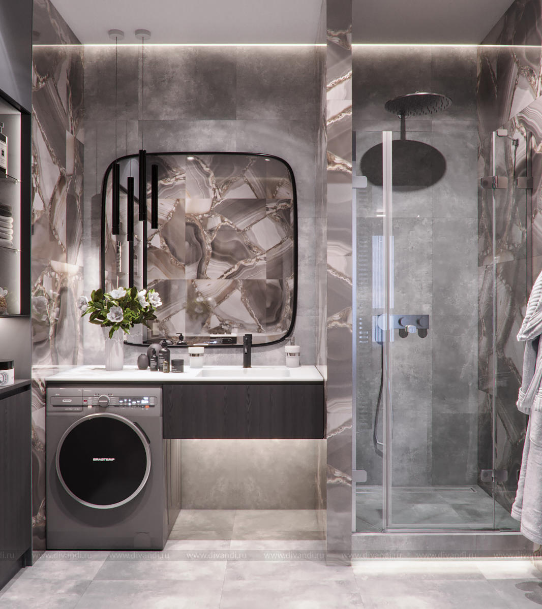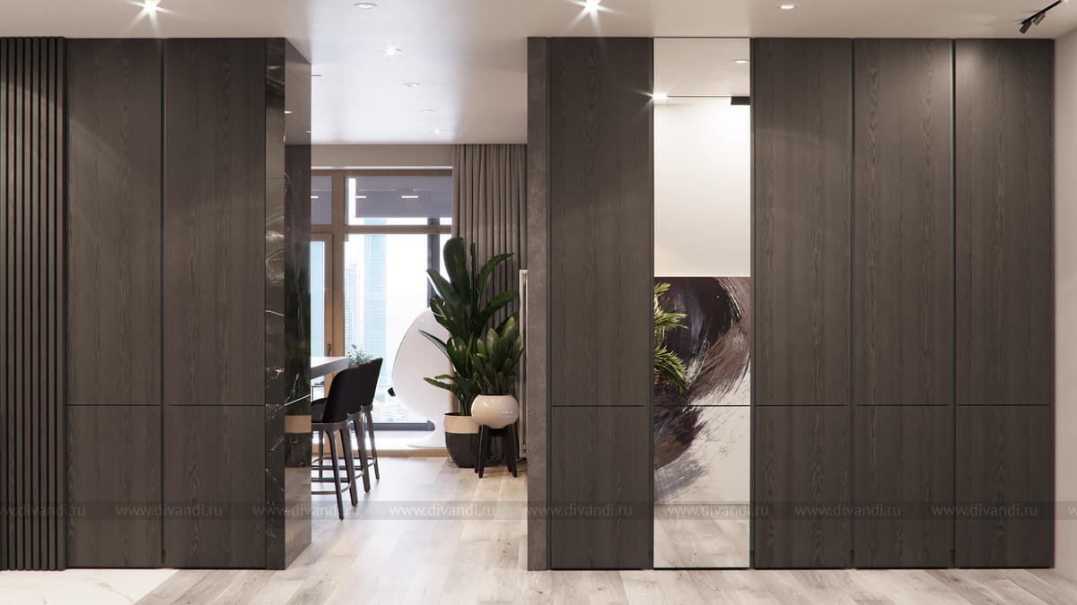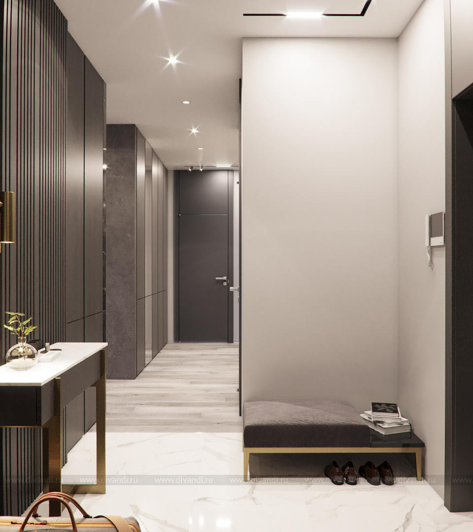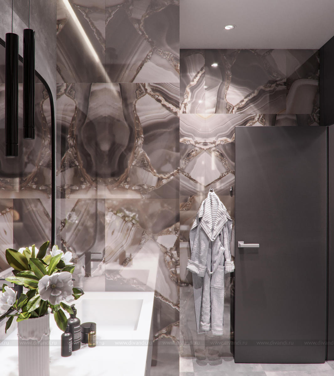 Минималистичный дизайн квартиры в ЖК Макаровский квартал выполнен в серой гамме без кричащих элементов и ярких цветов. Чтобы разбавить общую монохромную палитру помещения, интерьер наполнен контрастными деталями такими как, картины, цветы и растения, равномерно и точечно добавленных в пространство. Прямые формы, сложные оттенки делают помещение максимально стильным, лаконичным и взрослым. Использование в дизайне мрамора, дерева и металла добавляют интерьеру изысканности, шарма и лоска, где каждый элемент находится на своем месте без каких-либо излишеств.