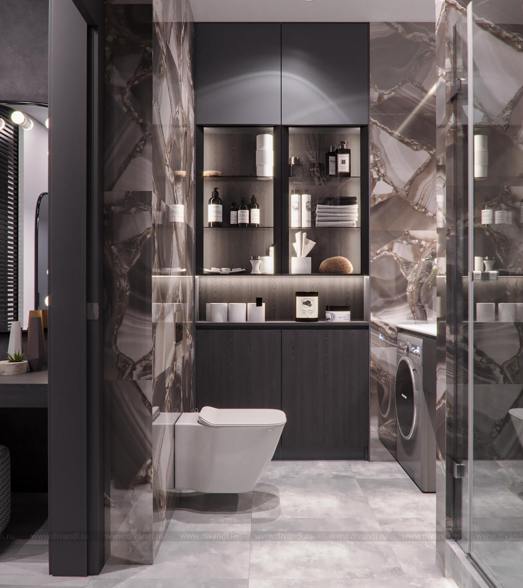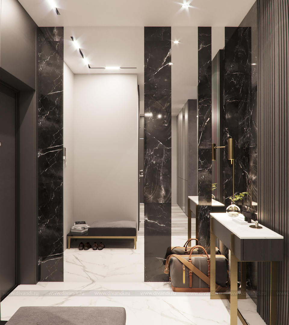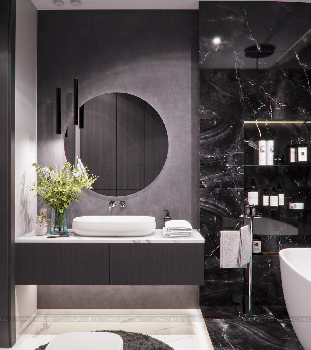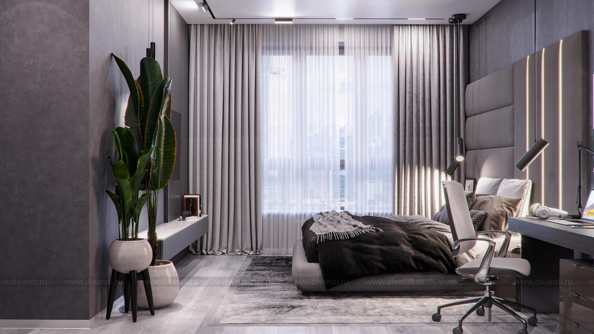 Минималистичный дизайн квартиры в ЖК Макаровский квартал выполнен в серой гамме без кричащих элементов и ярких цветов. Чтобы разбавить общую монохромную палитру помещения, интерьер наполнен контрастными деталями такими как, картины, цветы и растения, равномерно и точечно добавленных в пространство. Прямые формы, сложные оттенки делают помещение максимально стильным, лаконичным и взрослым. Использование в дизайне мрамора, дерева и металла добавляют интерьеру изысканности, шарма и лоска, где каждый элемент находится на своем месте без каких-либо излишеств.
