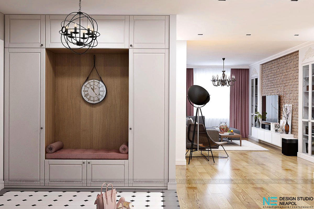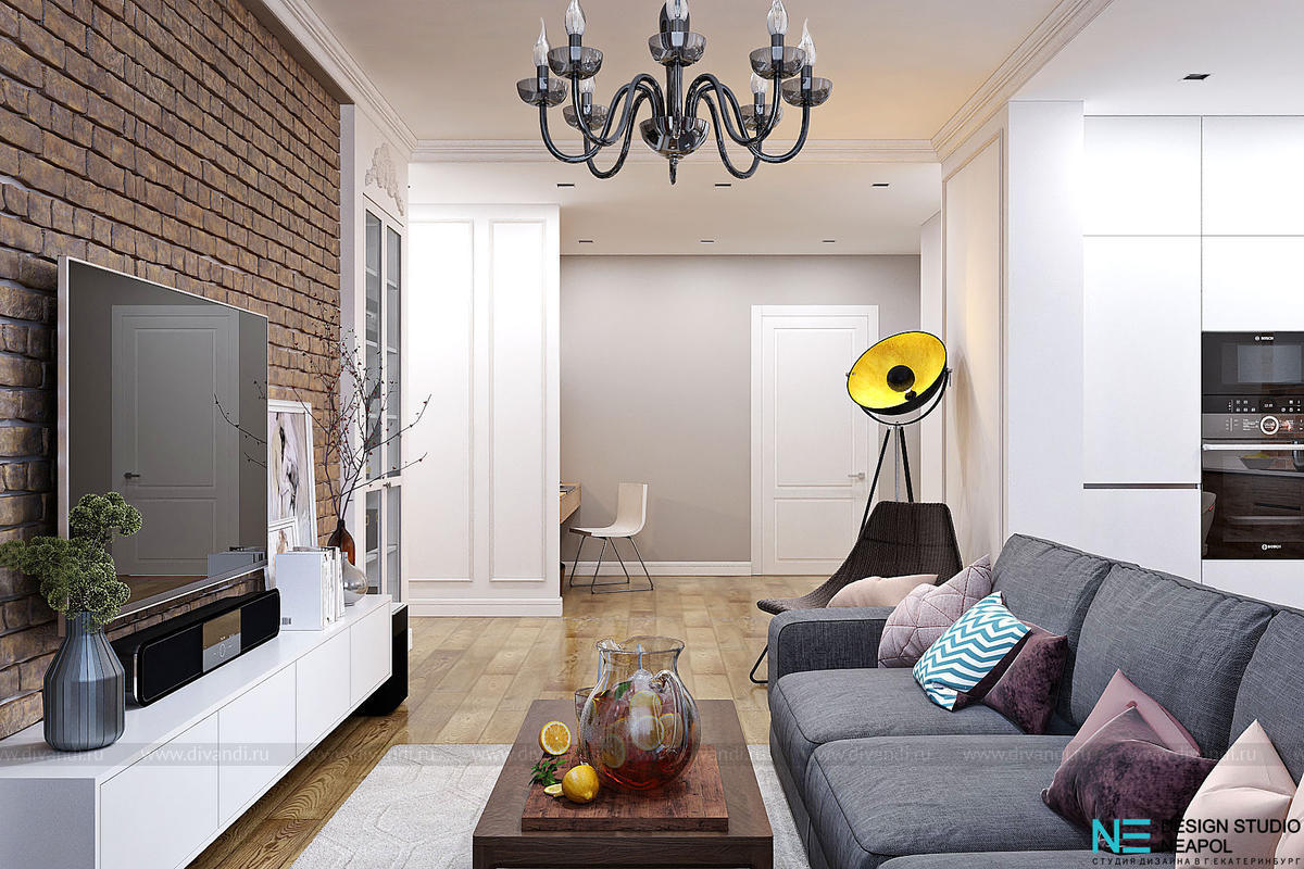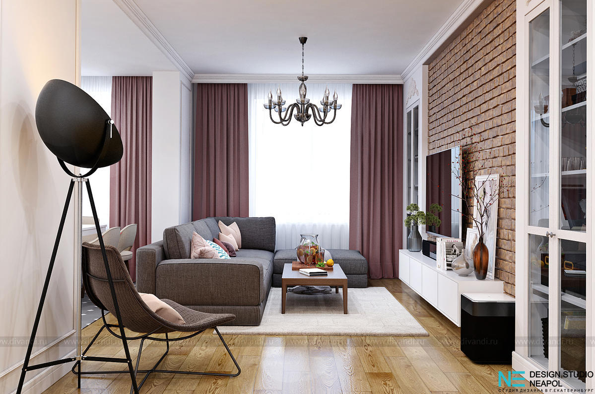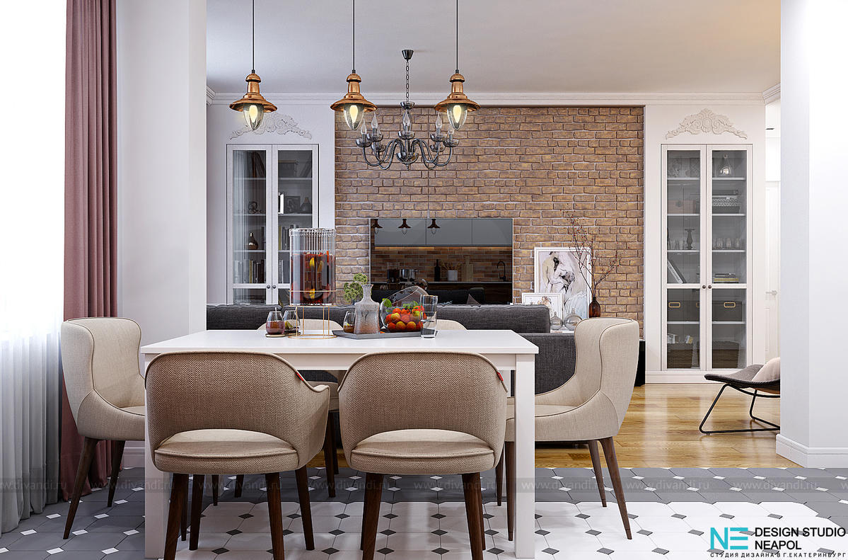 Дизайн интерьера трехкомнатной квартиры в ЖК «Московский квартал» площадью 92 кв.м. был спроектирован для молодой семьи. Основной задачей проекта и пожеланием заказчиков было грамотное сочетание нескольких стилей: лофта, классики, современности и востока.