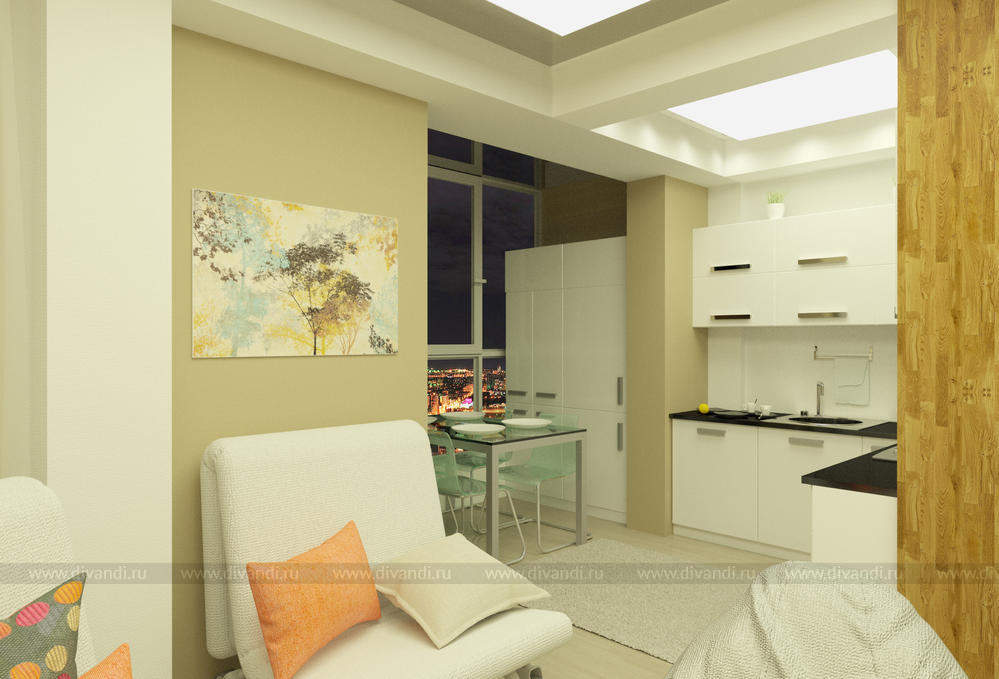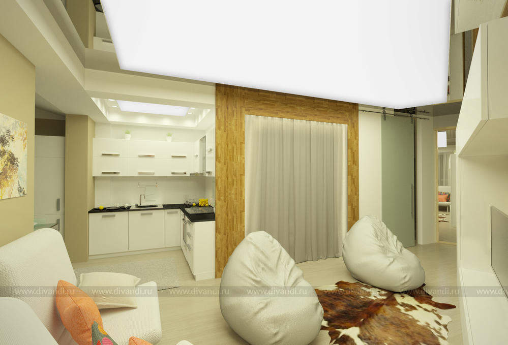 Под таким девизом выполнен дизайн представленной квартиры. Вся обстановка помещения сдержана, но эстетична. Создание полной свободы и простора, чему подтверждение отсутствие разделения пространства на отдельные зоны. Господствуют светлые тона. Нестандартное решение - спальная зона. Контраст темного потолка с молочными полом и стенами придает комнате ощущение "норки".