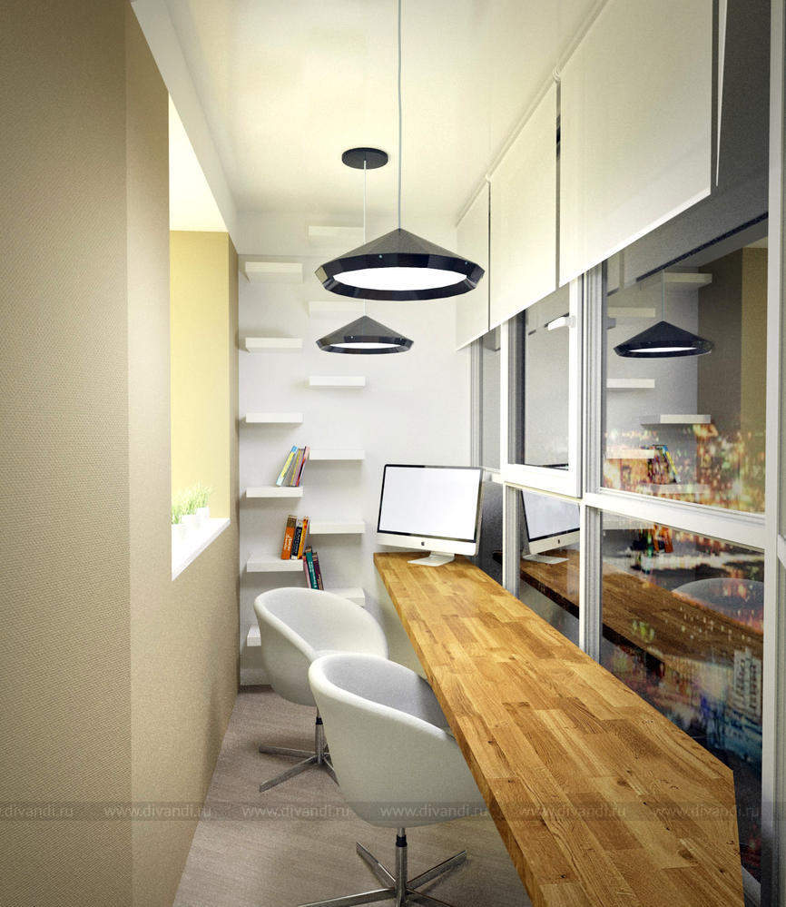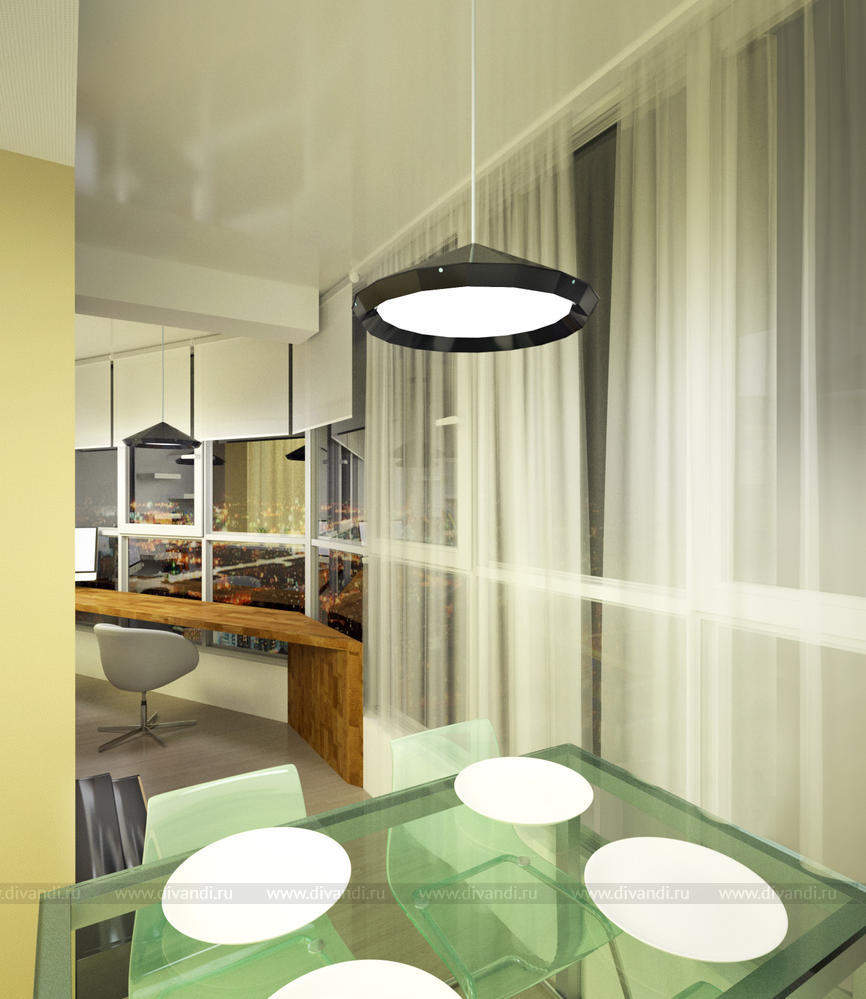 Особого внимания заслуживает рабочая зона. Для заказчика было важно чтобы, работая в кабинете, он мог черпать вдохновение из всего, что его окружает. Дизайнер предложил прием панорамного остекления.