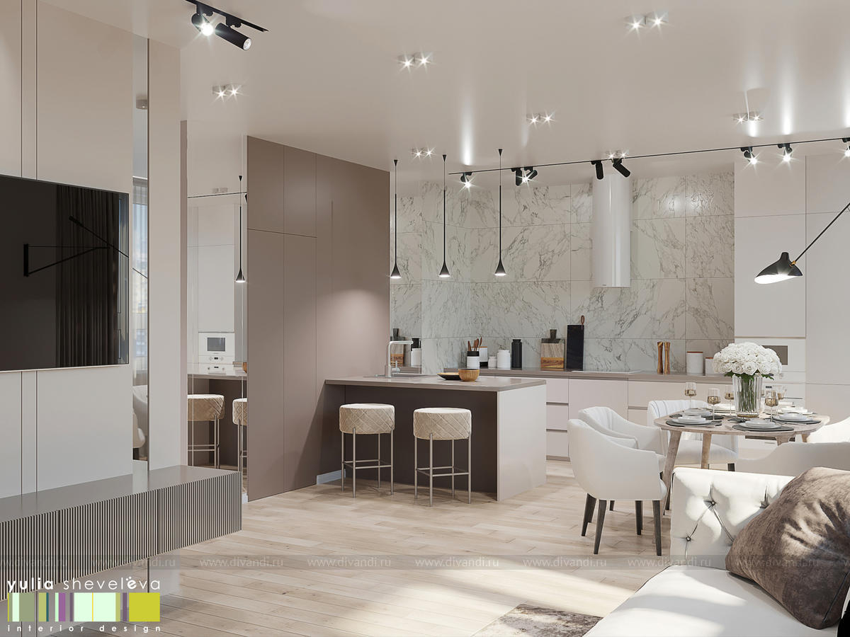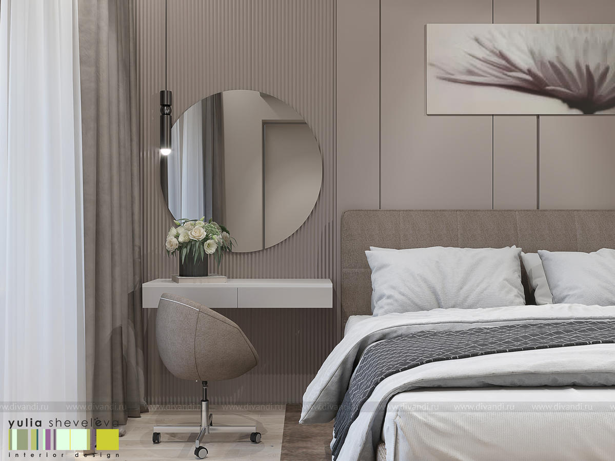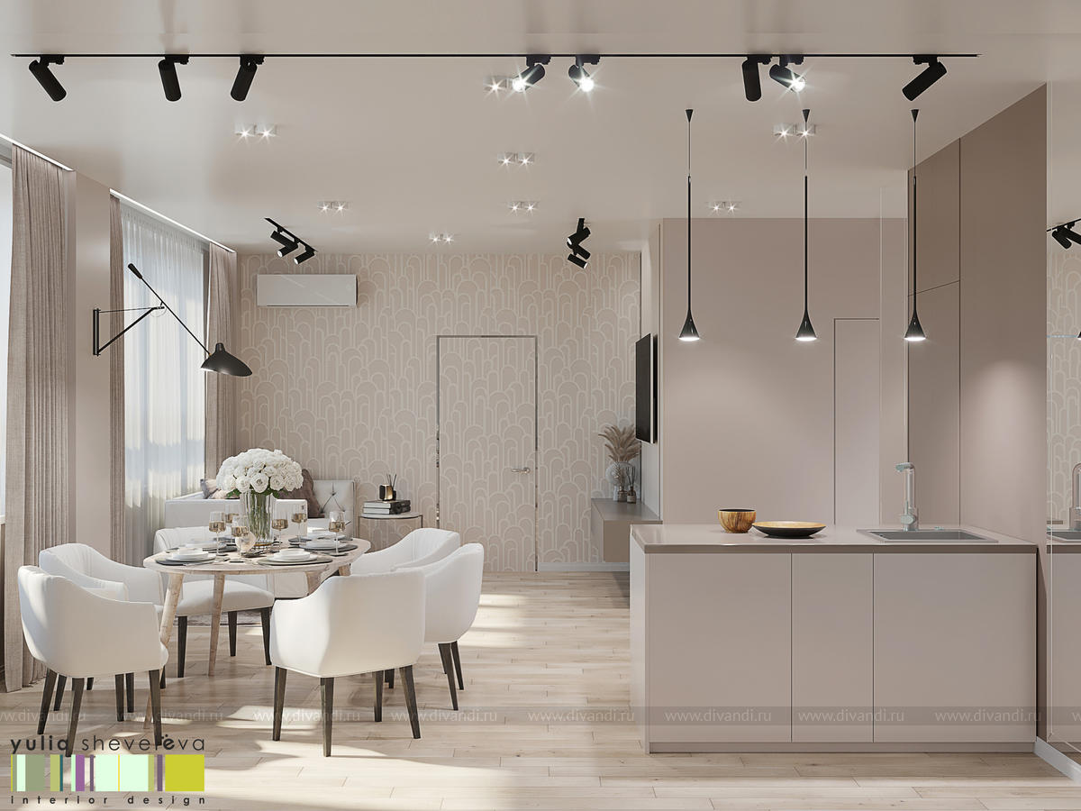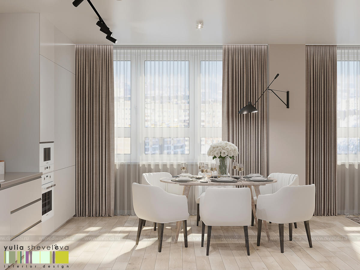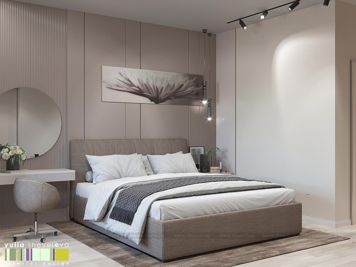 Для интерьера выбран современный стиль и легкие нейтральные тона.
