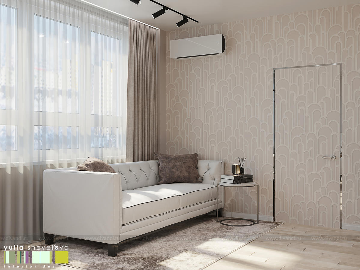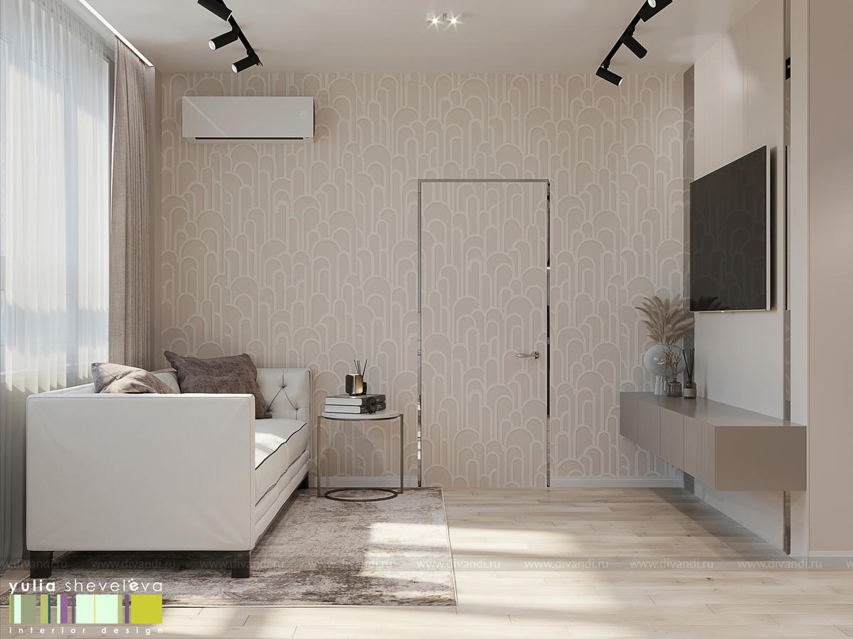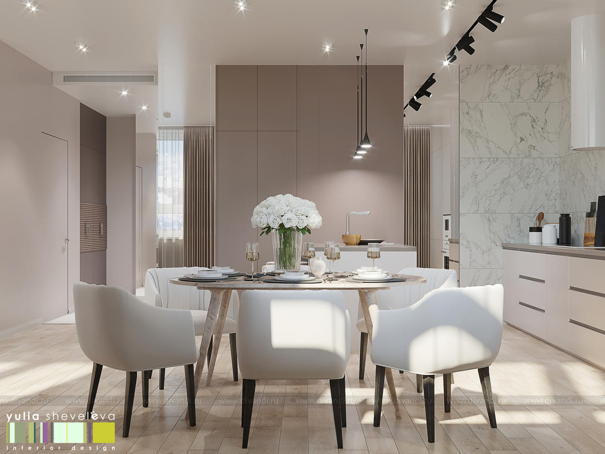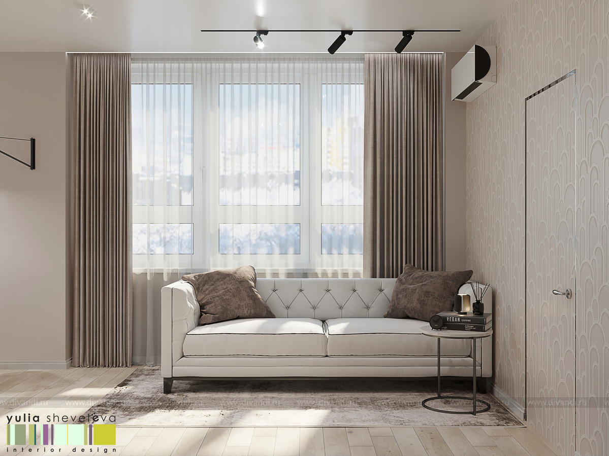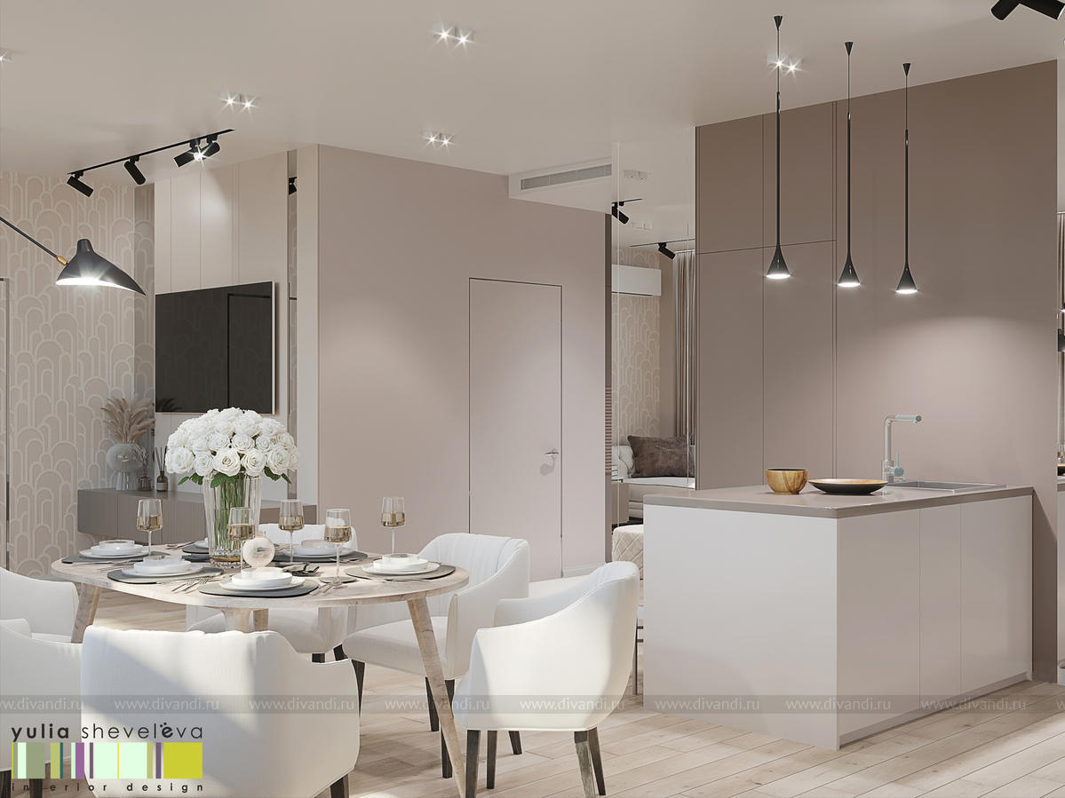 Для интерьера выбран современный стиль и легкие нейтральные тона.
