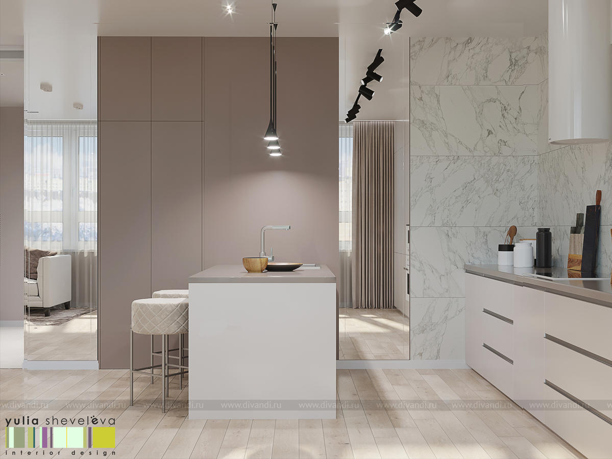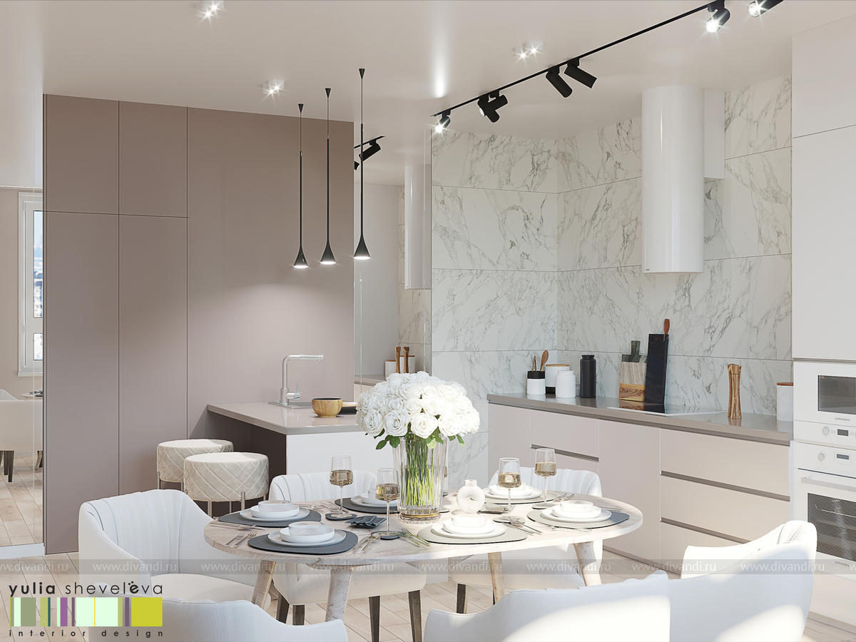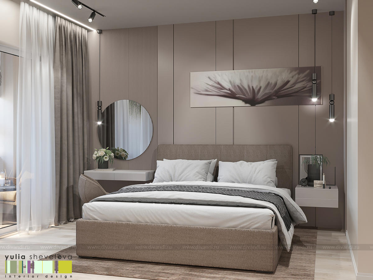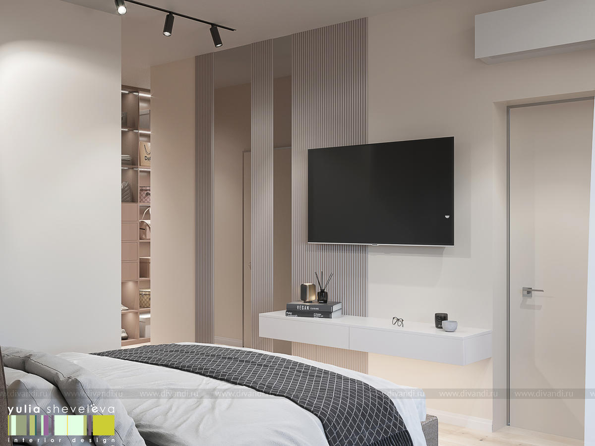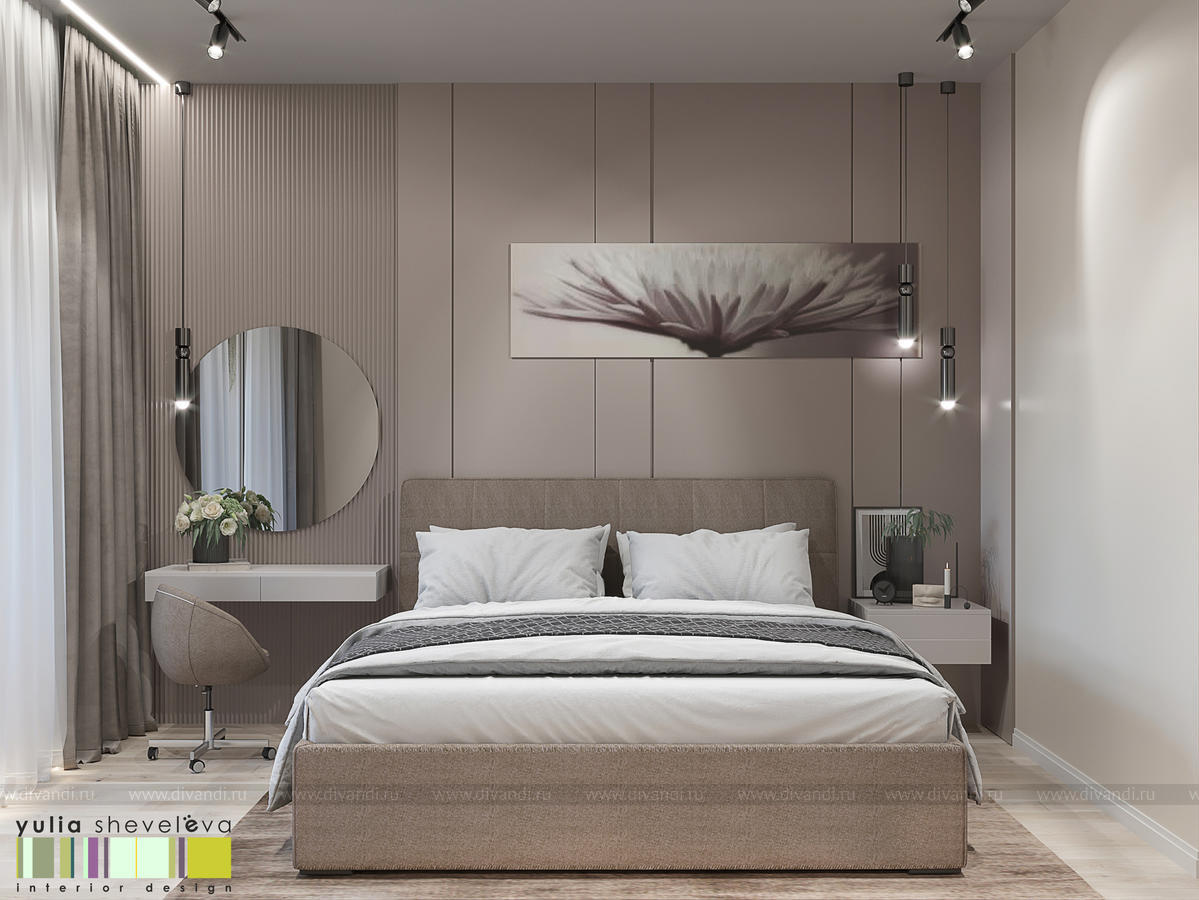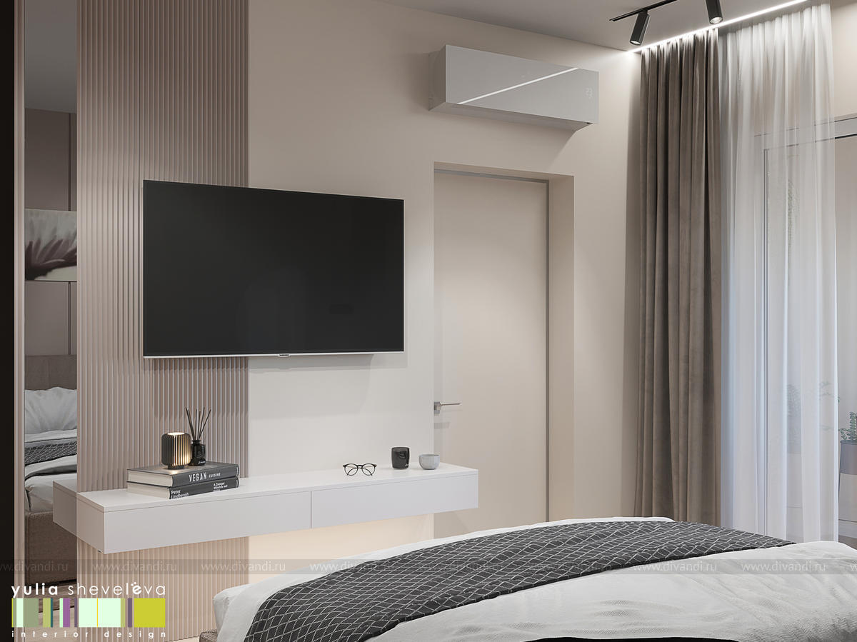 Для интерьера выбран современный стиль и легкие нейтральные тона.