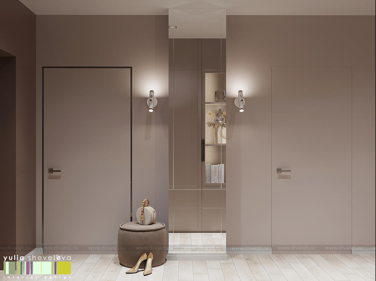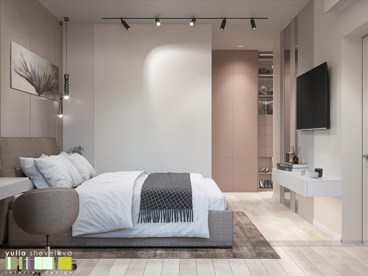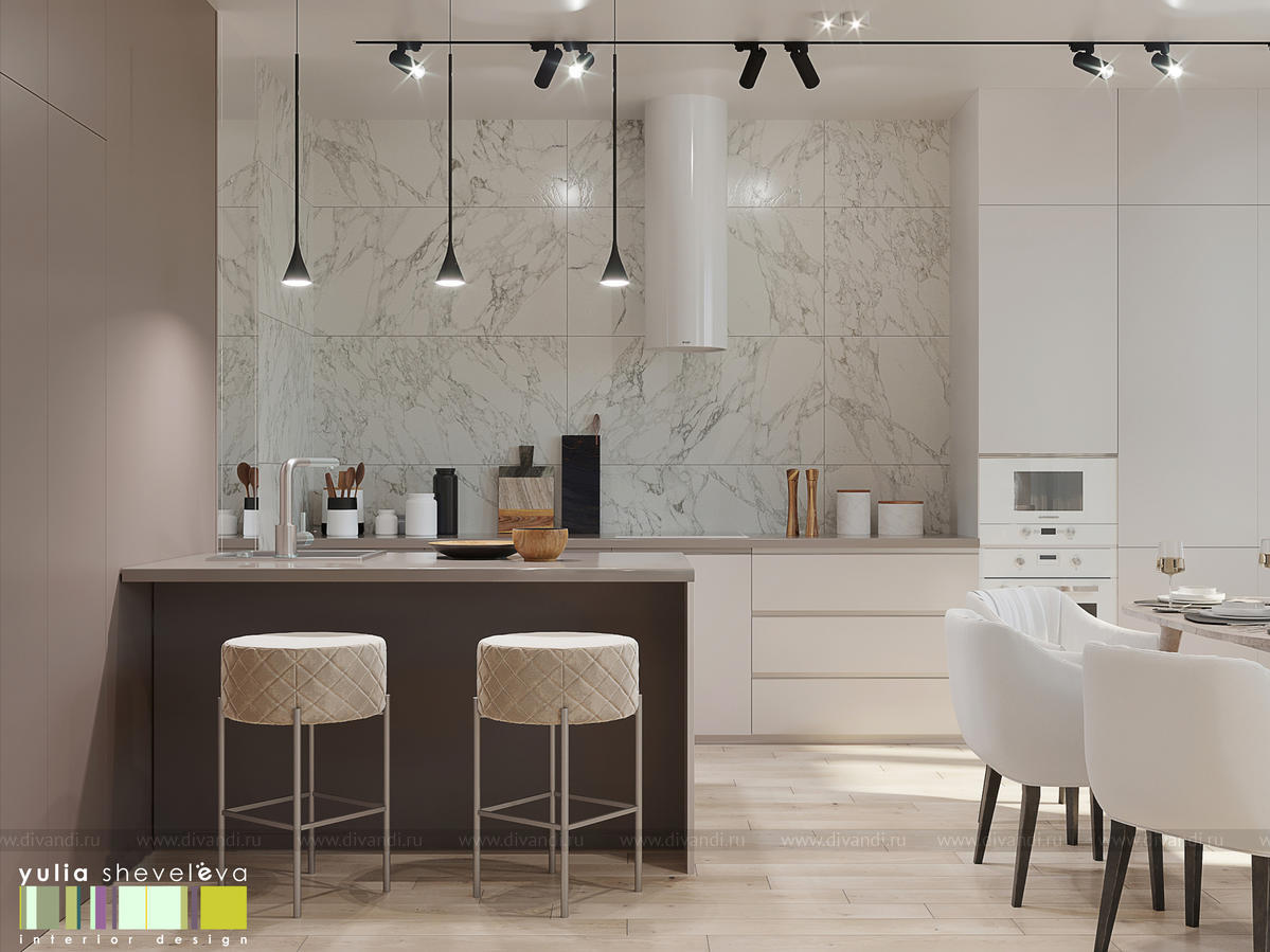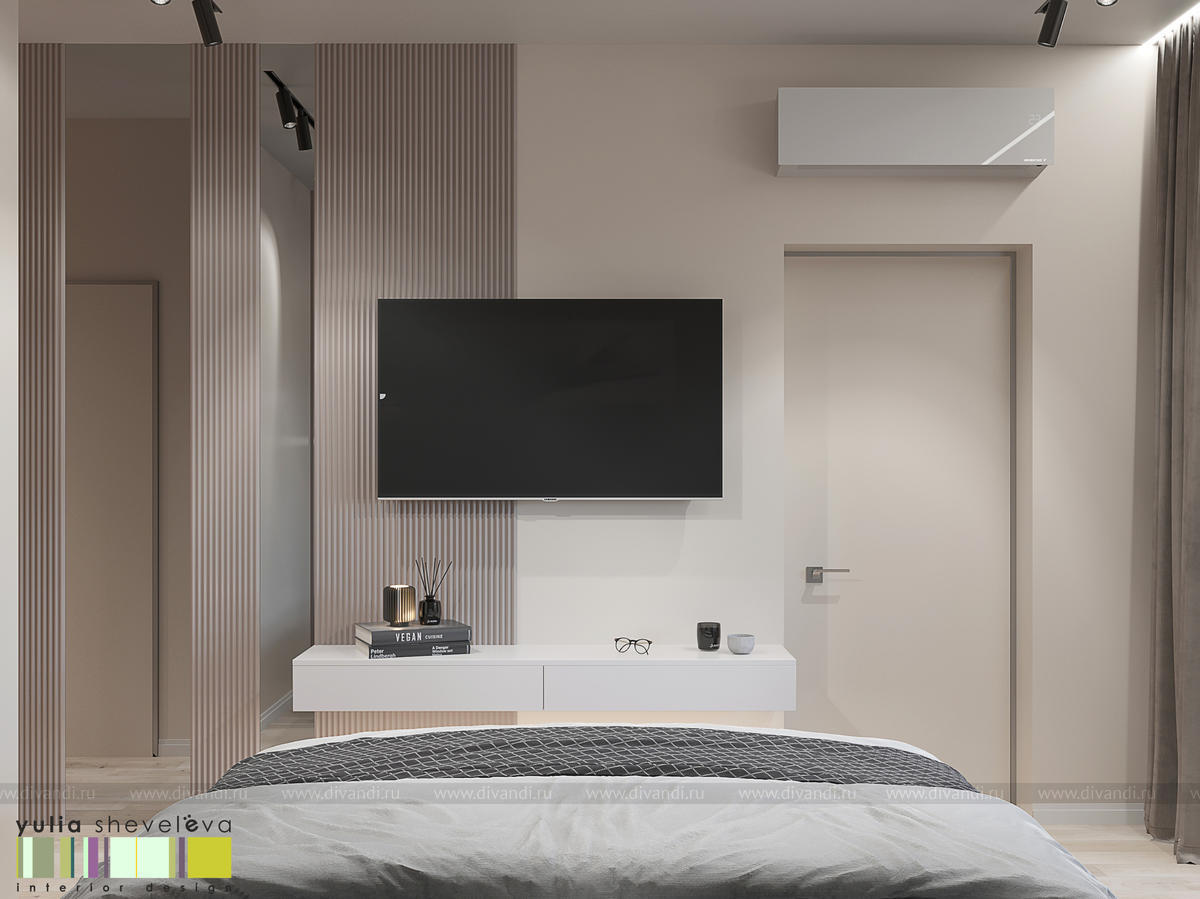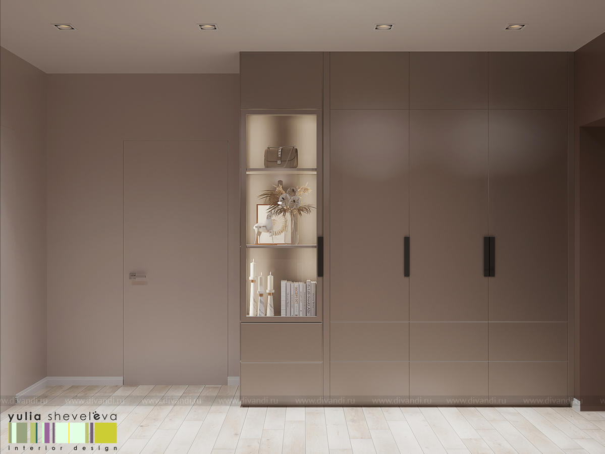Для интерьера выбран современный стиль и легкие нейтральные тона.
