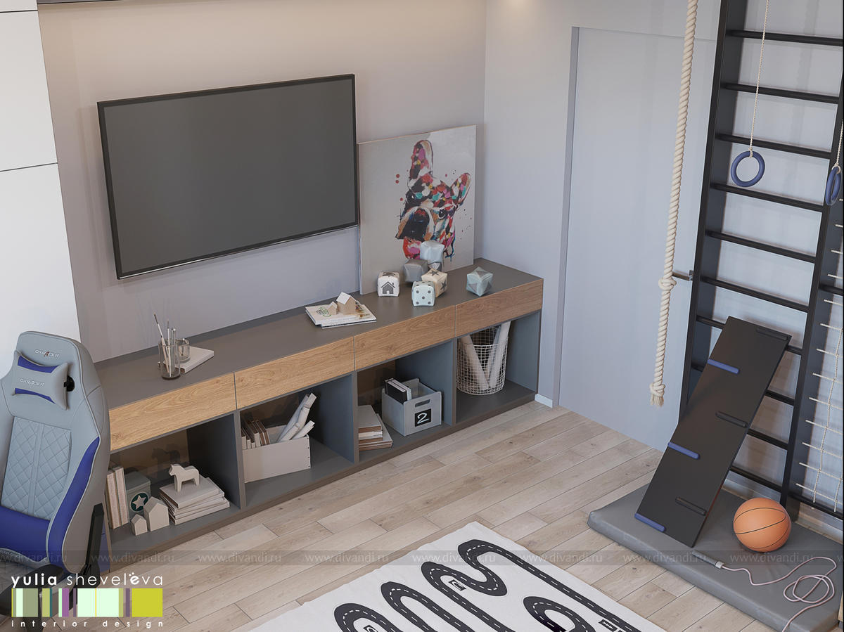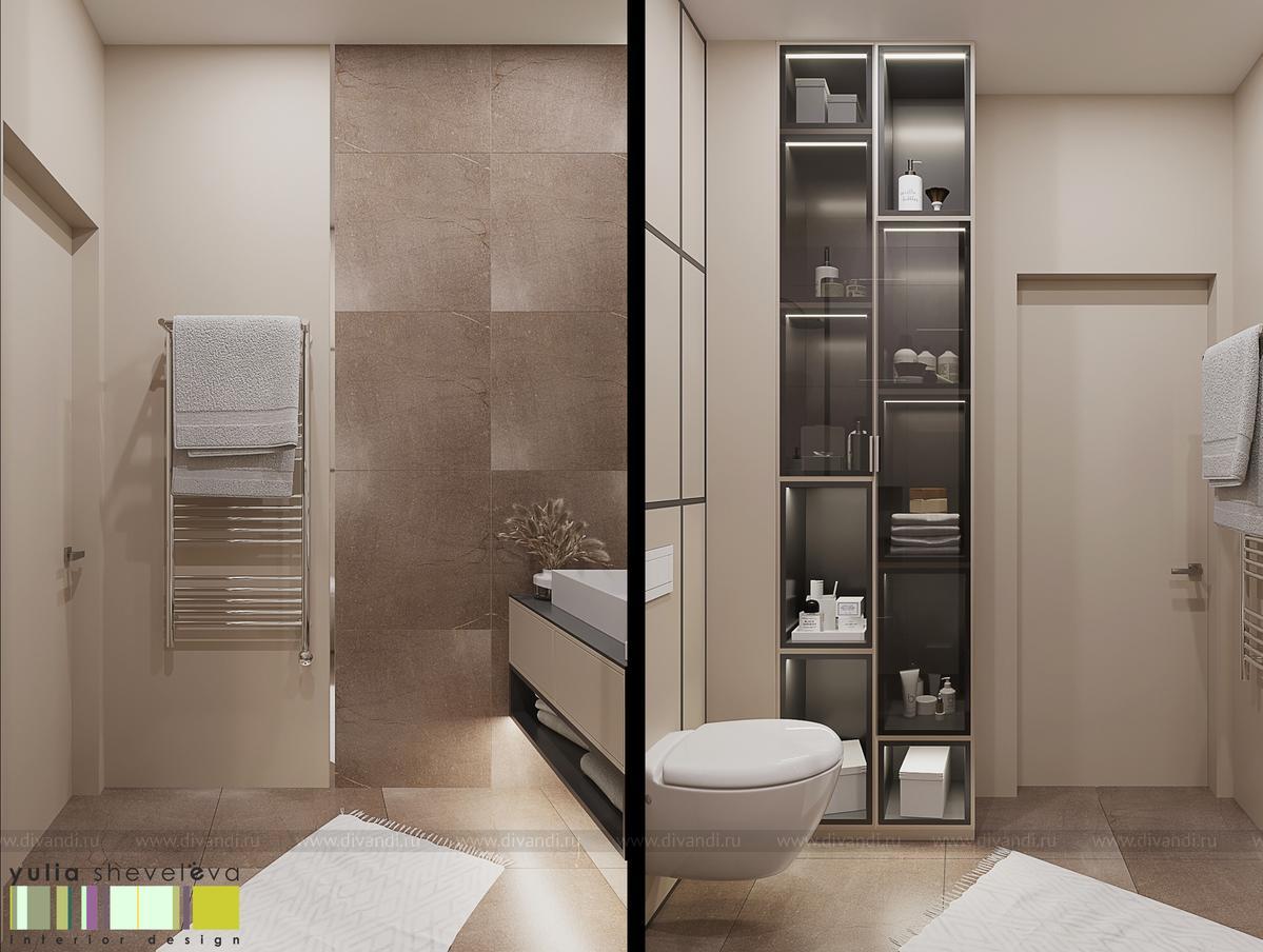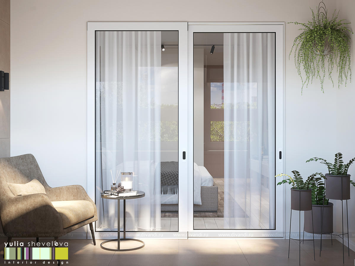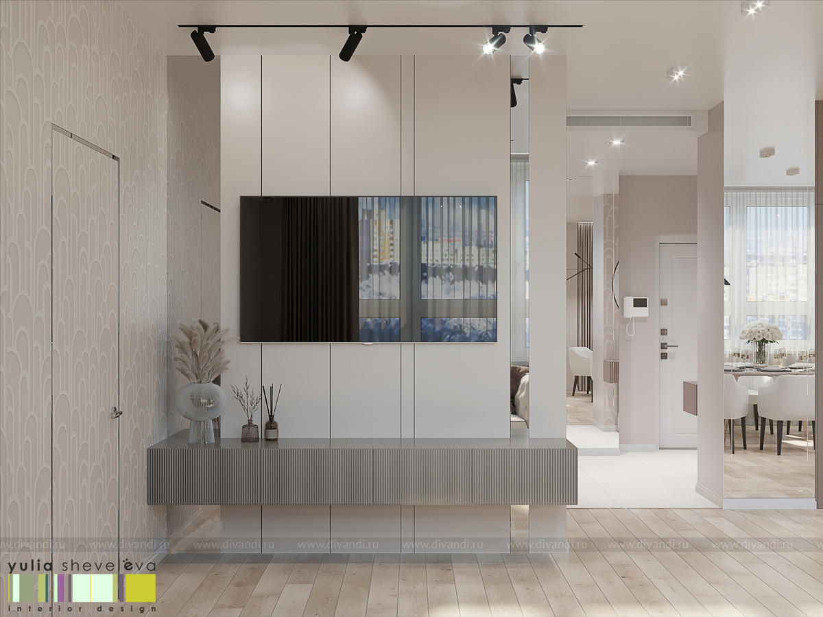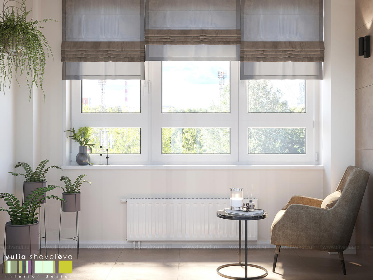 Для интерьера выбран современный стиль и легкие нейтральные тона.