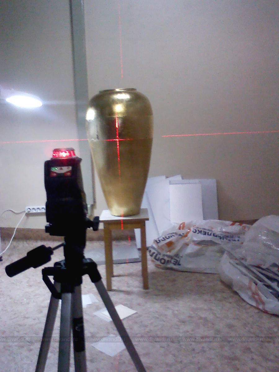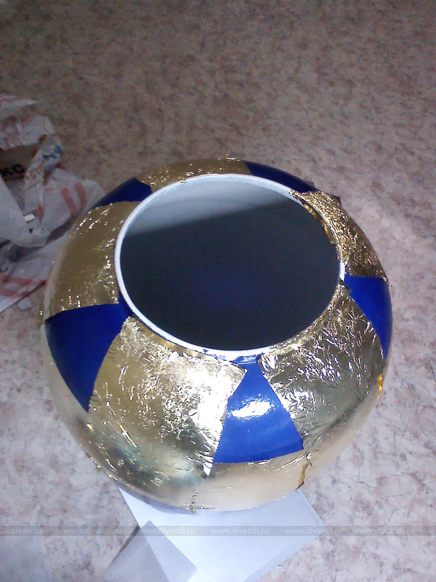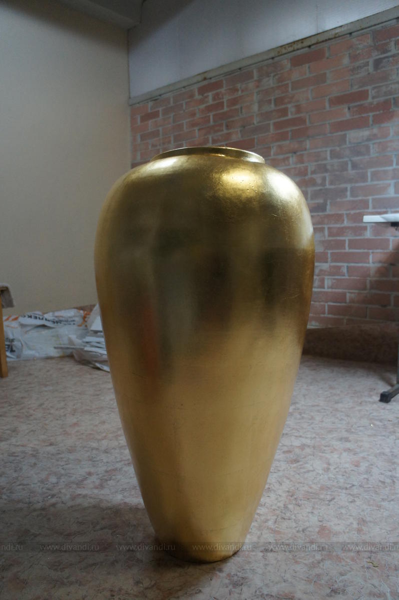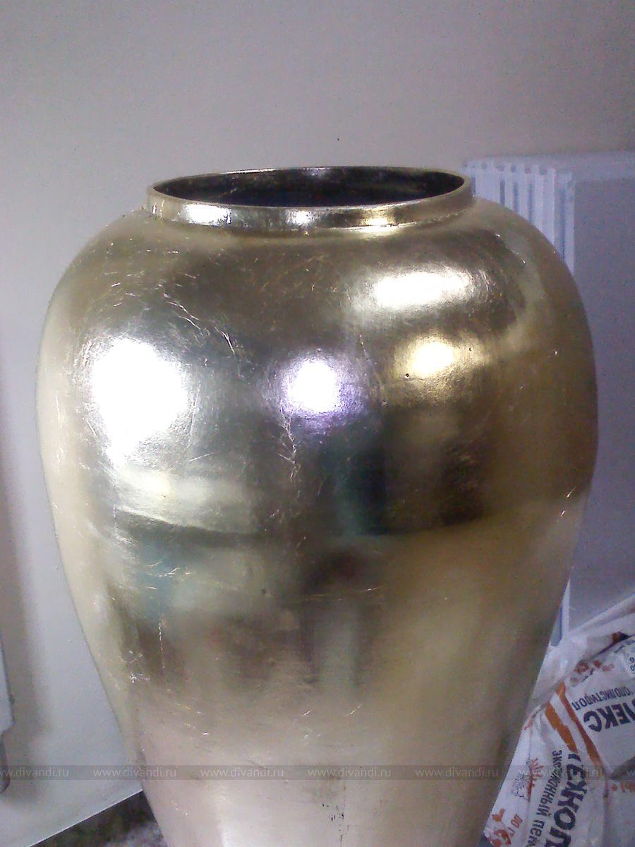 Золочение (поталь) напольной вазы. Грунт, клей, поталь в два слоя, финишный лак для потали. Данный заказ был в загородный дом.