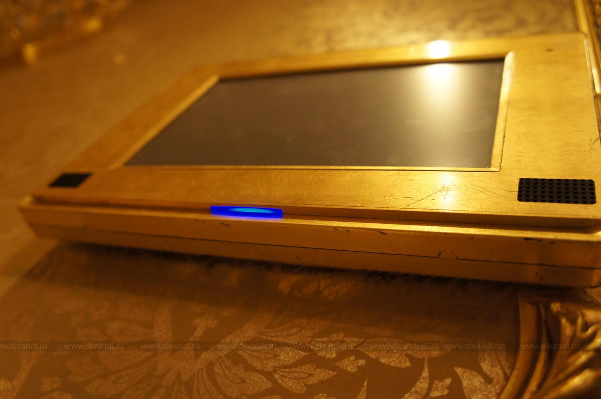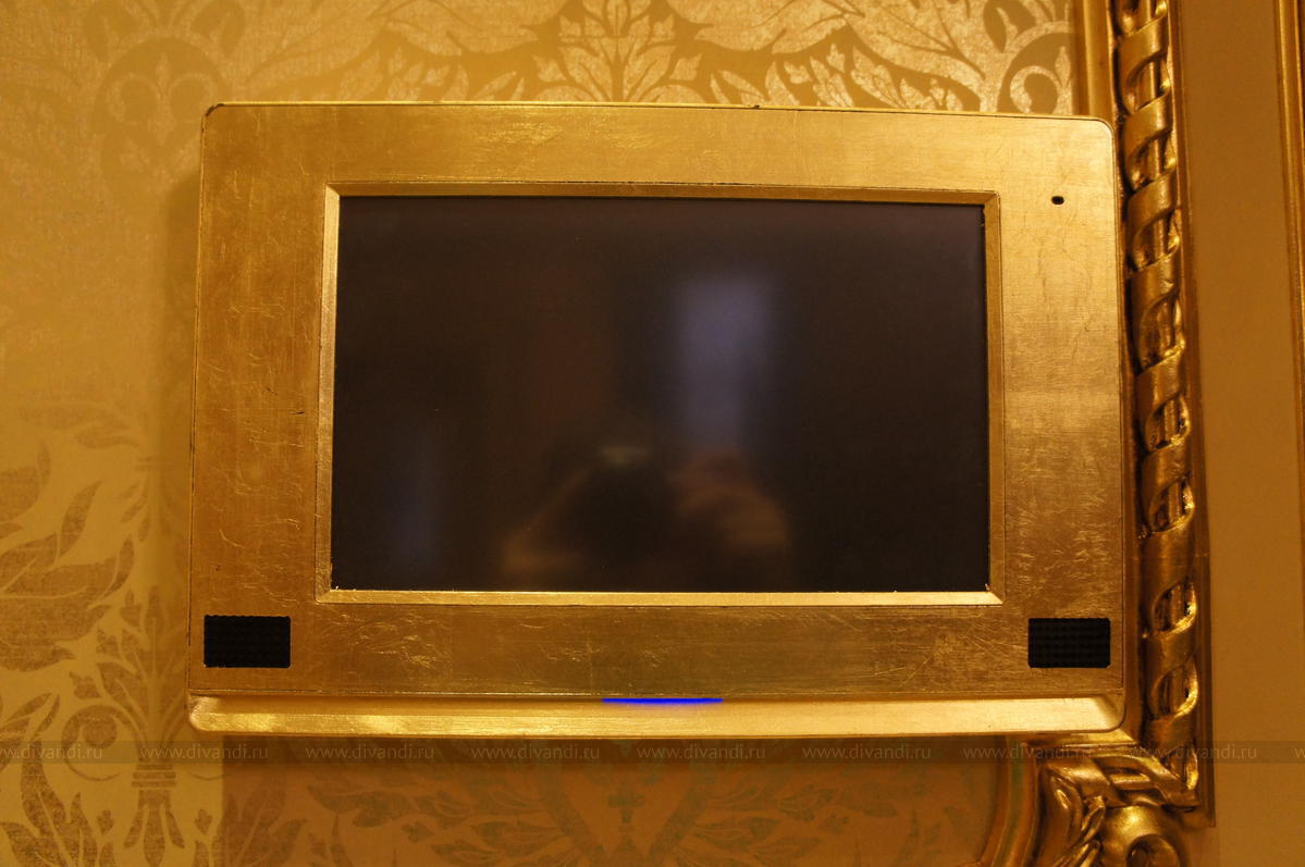 Заказчику нужно было интегрировать чёрный видеофон в существующий интерьер в дворцовом стиле. Прибор пришлось разобрать, озолотить и собрать, оставив открытыми только технические отверстия.