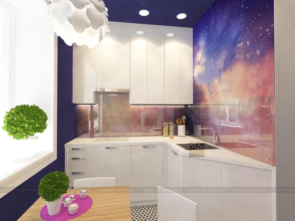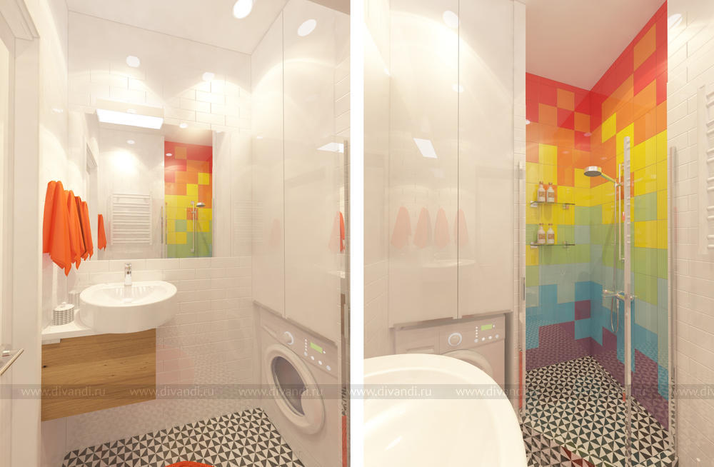 В этой квартире (53 кв.м.) профессиональная спортсменка будет отдыхать и проводить время с друзьями в свободное от разъездов время. Хозяйка квартиры не побоялась добавить в интерьер цвета, поэтому каждое помещение получилось индивидуальным и ярким. При этом цвет применяется по-разному. Где-то это яркий потолок с бледными стенами, а где-то - радуга из плитки.