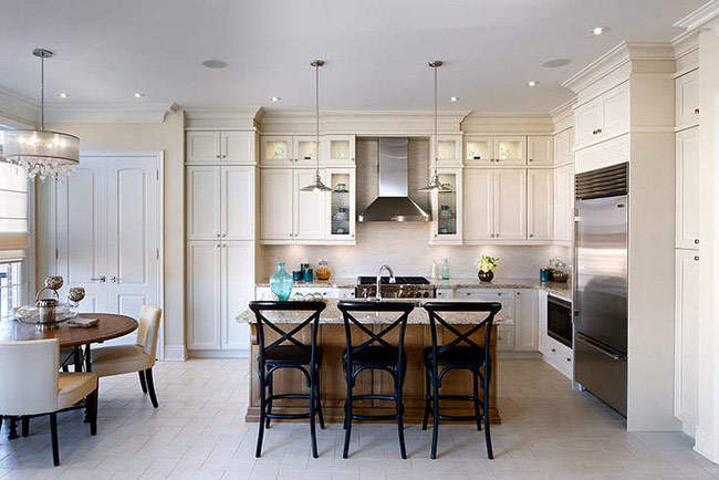 Канадская столовая вовсе не предназначена для легких перекусов. Здесь можно максимально комфортно провести целый вечер, не имея потребности переместиться в обычно более удобную гостиную. И все это из-за полноценных кресел при столе, которые заменяют обычные стулья. Для легких завтраков же часто можно встретить барную стойку или дополнительный уголок на кухне.