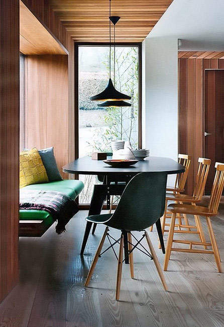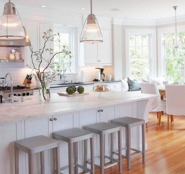 Какие же идеи есть для использования эркера на кухне? Во-первых, это расположение вдоль стены неправильной формы кушетки для сидения. Конечно же, ее придется сделать на заказ или даже своими руками. Но если к ней приставить обеденный стол, с другой стороны которого поставить стулья — это будет самое любимое место в доме для всей семьи! Столько света будет проникать в вашу столовую, что вам наверняка захочется проводить здесь побольше времени — еще и читать или сидеть за ноутбуком, к примеру.