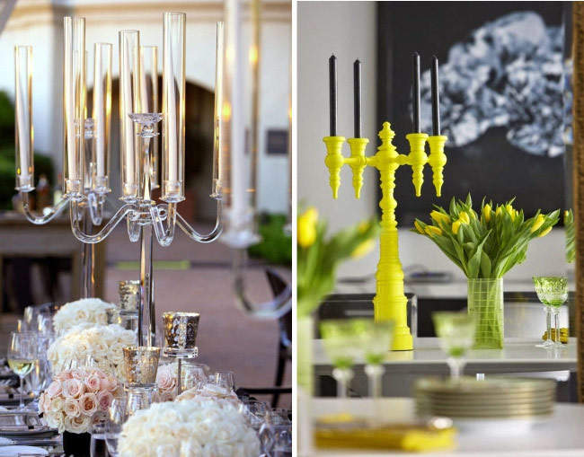 Можно использовать два вида канделябров — антикварные, или просто старые; и новые — может быть даже пластиковые. В любом из вариантов обязательно следует обыграть тип и цвет подсвечника в соответствии с интерьером.