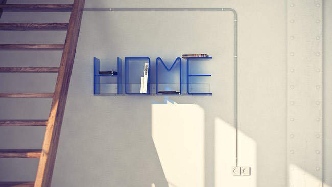 Еще один интересный вариант — покупка полки или стеллажа в форме какой-либо надписи. За такой мебелью стоит обращаться в специализированный креативный салон. Если такого нет в вашем городе, попробуйте найти предметы в он-лайн магазине.